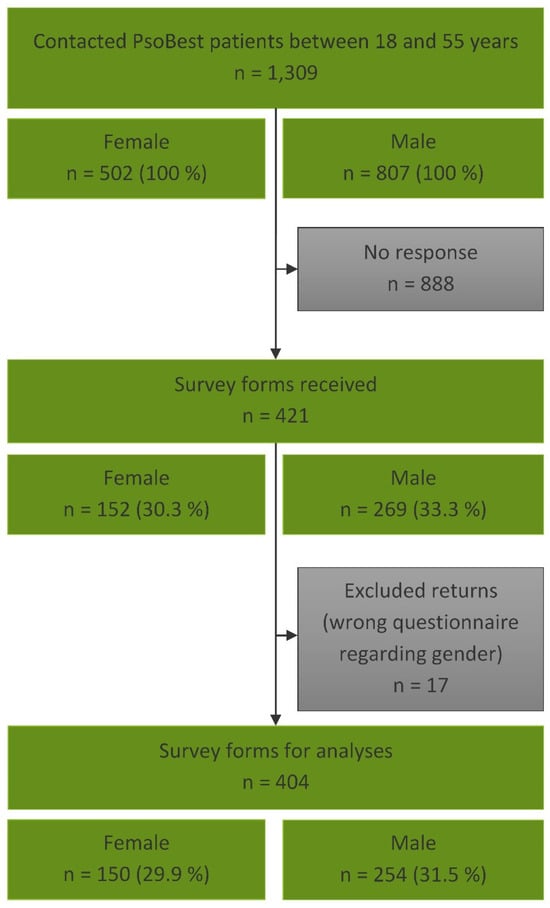 - da Silva, N.; Augustin, M.; Langenbruch, A.; Mrowietz, U.; Reich, K.; Thaçi, D.; Boehncke, W.-H.; Kirsten, N.; Danckworth, A.; Sommer, R. Sex-related impairment and patient needs/benefits in anogenital psoriasis: Difficult-to-communicate topics and their impact on patient-centred care. PLoS ONE 2020, 15, e0235091. [Google Scholar] [CrossRef]