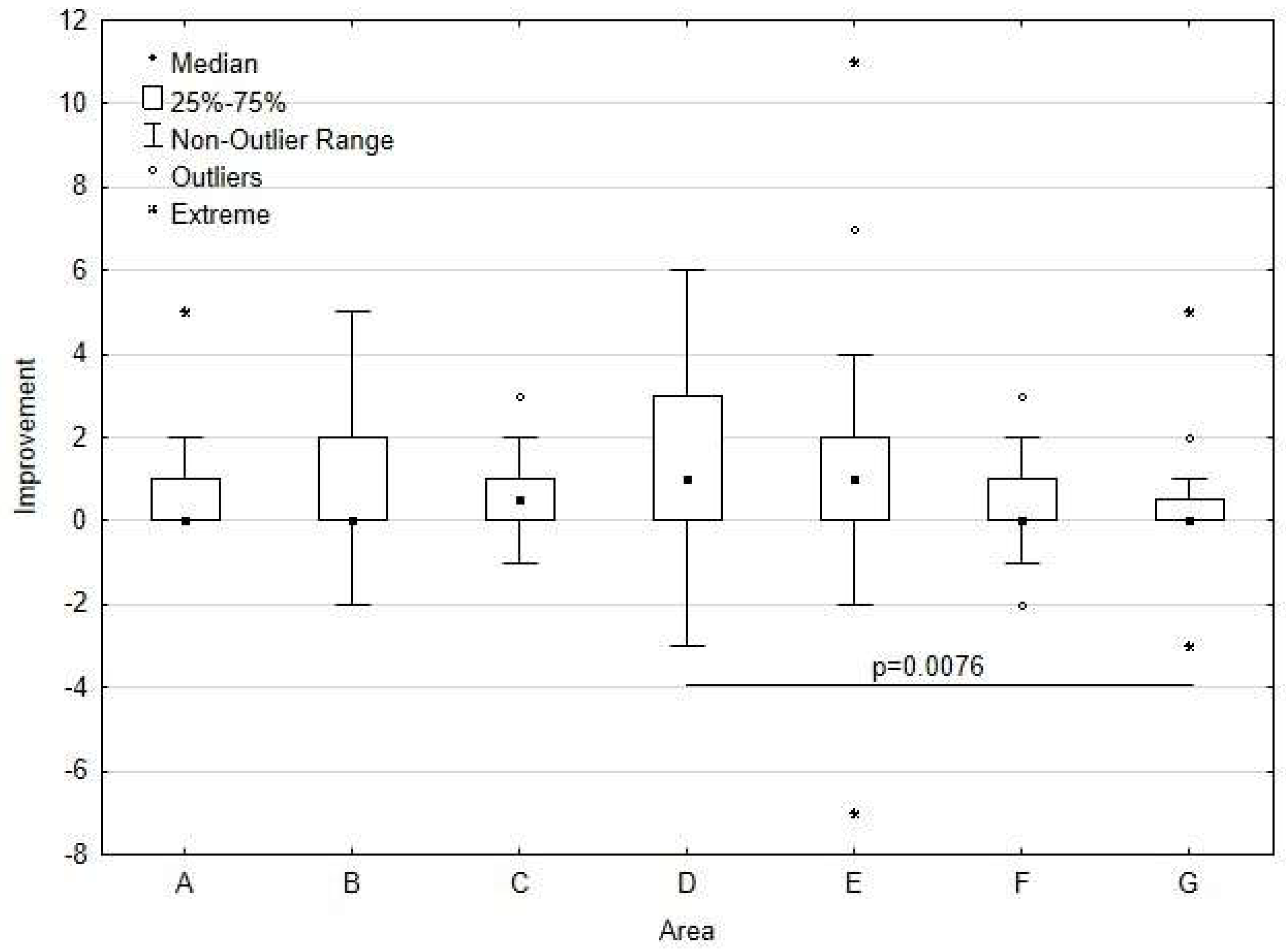| Area | Summary Rating “Before” (Median, Quartiles) | Overall Rating “After” (Median, Quartiles) | p |