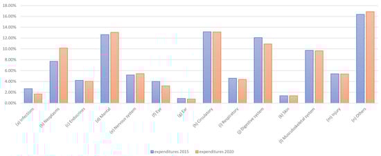 Changes in health expenditure by disease category, 2015 vs. 2020.