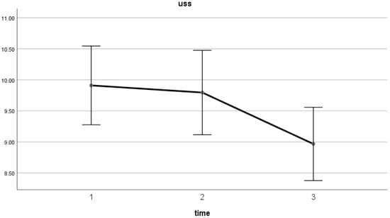 The results indicate significant changes in uncertainty stress over the course of the study (W = 7.25, p < 0.05, Figure 1). It is the proportion reporting a doctor–patient conflict that experienced increased uncertainty stress (W = 6.65, p < 0.05). Similarly, there was an increase in the reference norm from teachers (higher scores indicating poorer perceived opinions) (Table 2).