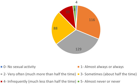 Distribution of participants based on their ability to achieve an erection during sexual activity in the past four weeks. This figure illustrates the frequency with which participants reported being able to achieve an erection during sexual activity over the past month.