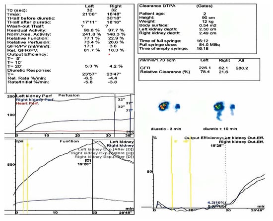 - Duong, H.P.; Piepsz, A.; Collier, F.; Khelif, K.; Christophe, C.; Cassart, M.; Janssen, F.; Hall, M.; Ismaili, K. Predicting the Clinical Outcome of Antenatally Detected Unilateral Pelviureteric Junction Stenosis. Urology 2013, 82, 691–696. [Google Scholar] [CrossRef]