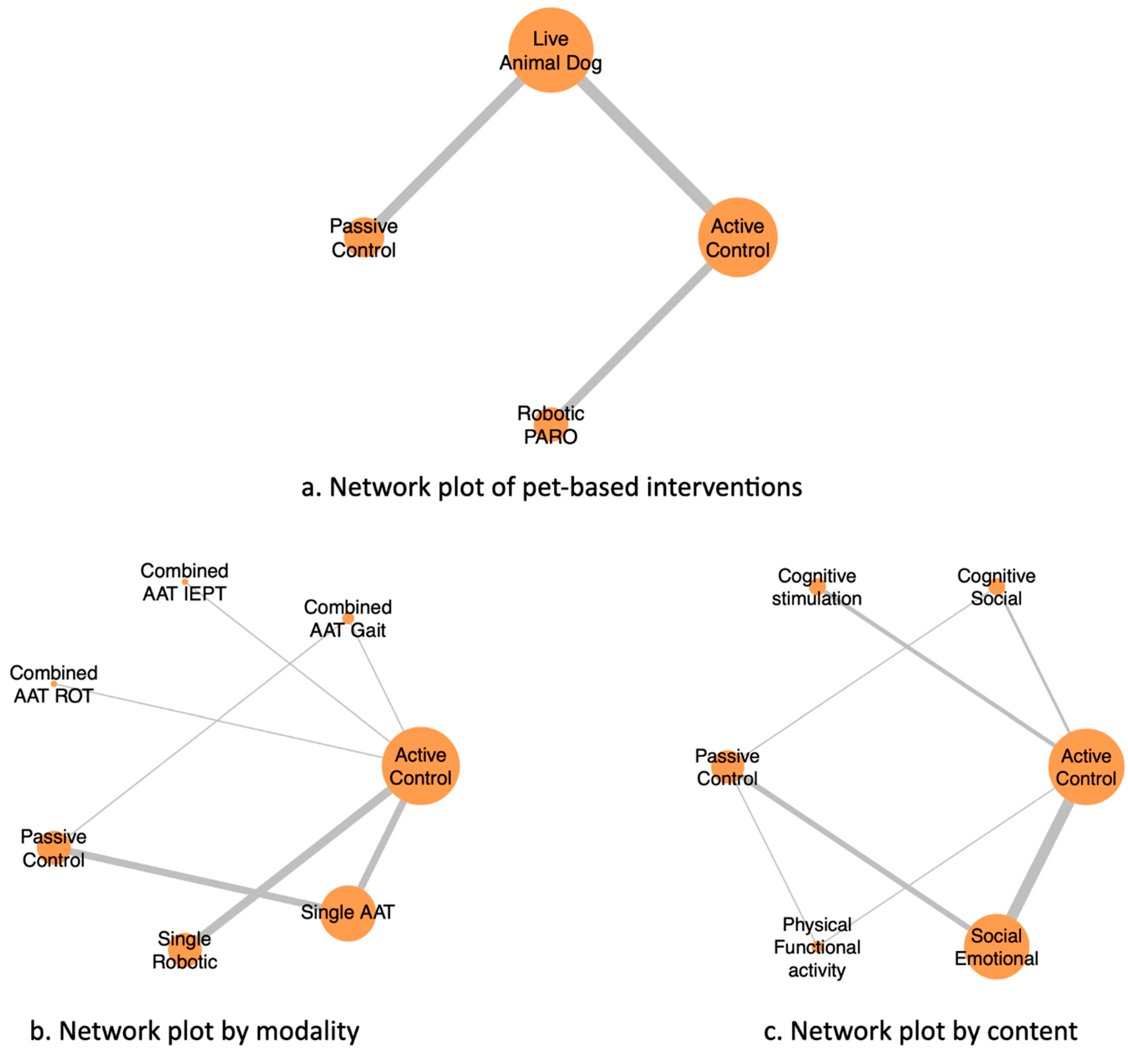 | Majic (2013) [7] | Germany | parallel-group RTC | AAT Control | 27 27 | 81.33 82.07 | 6.37 7.63 | Live Animal–Dog | Single–AAT | Social & Emotional | Passive | Routine care only | ≤45 min/once weekly/10 weeks | DMAS |