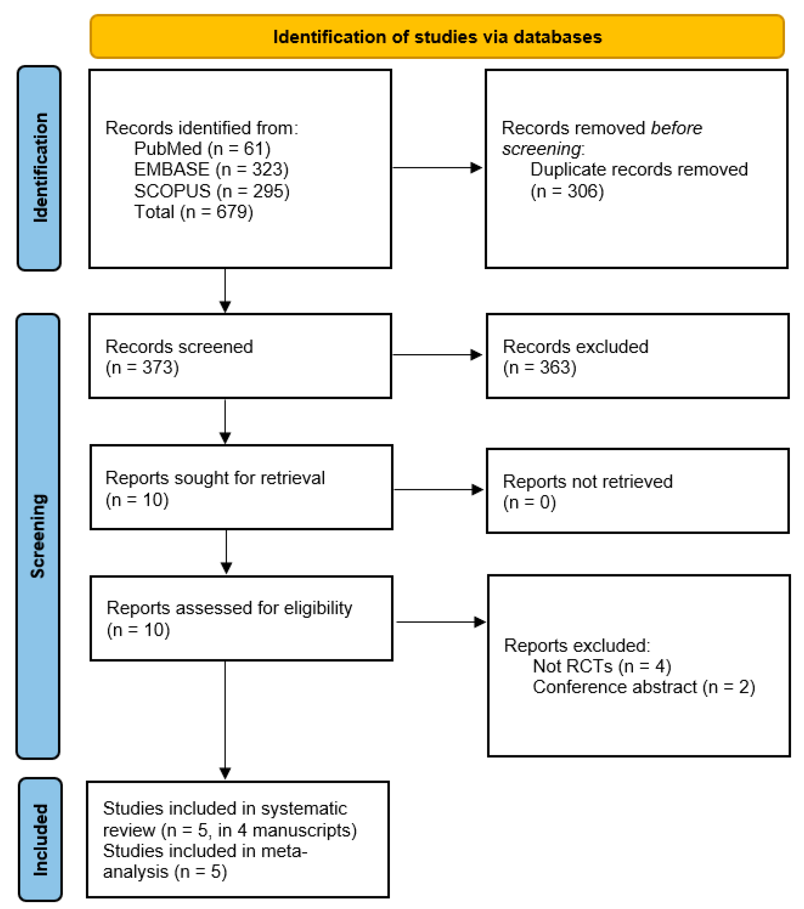 - Sterne, J.A.C.; Savović, J.; Page, M.J.; Elbers, R.G.; Blencowe, N.S.; Boutron, I.; Cates, C.J.; Cheng, H.-Y.; Corbett, M.S.; Eldridge, S.M.; et al. RoB 2: A revised tool for assessing risk of bias in randomised trials. BMJ 2019, 366, l4898. [Google Scholar] [CrossRef] [PubMed]