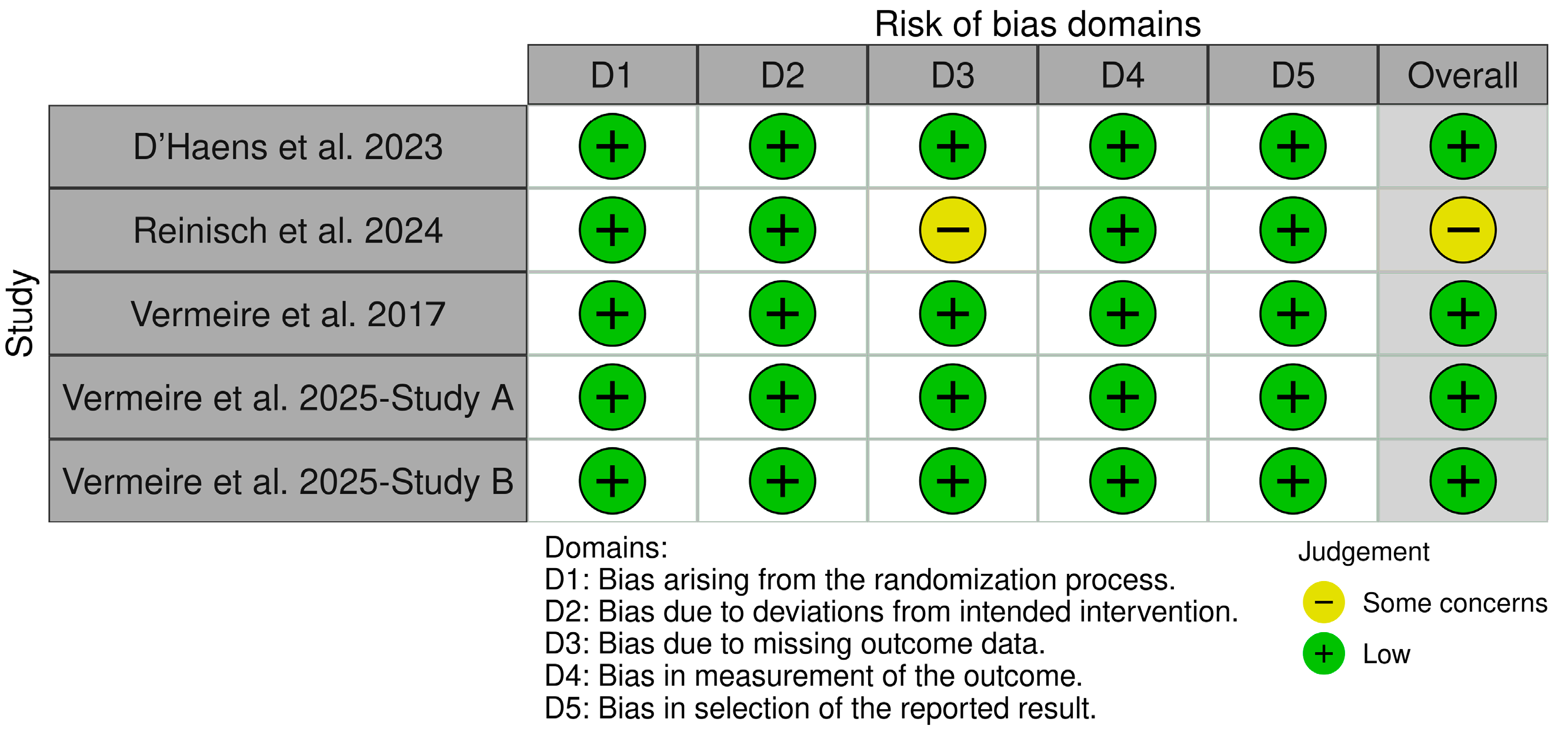 | Vermeire et al. 2017 [8] | Placebo (n = 44) | 35.1 (11.8) | 59 | 6.8 (5.7) | 298.6 (56.8) | 15.8 (7.2) |