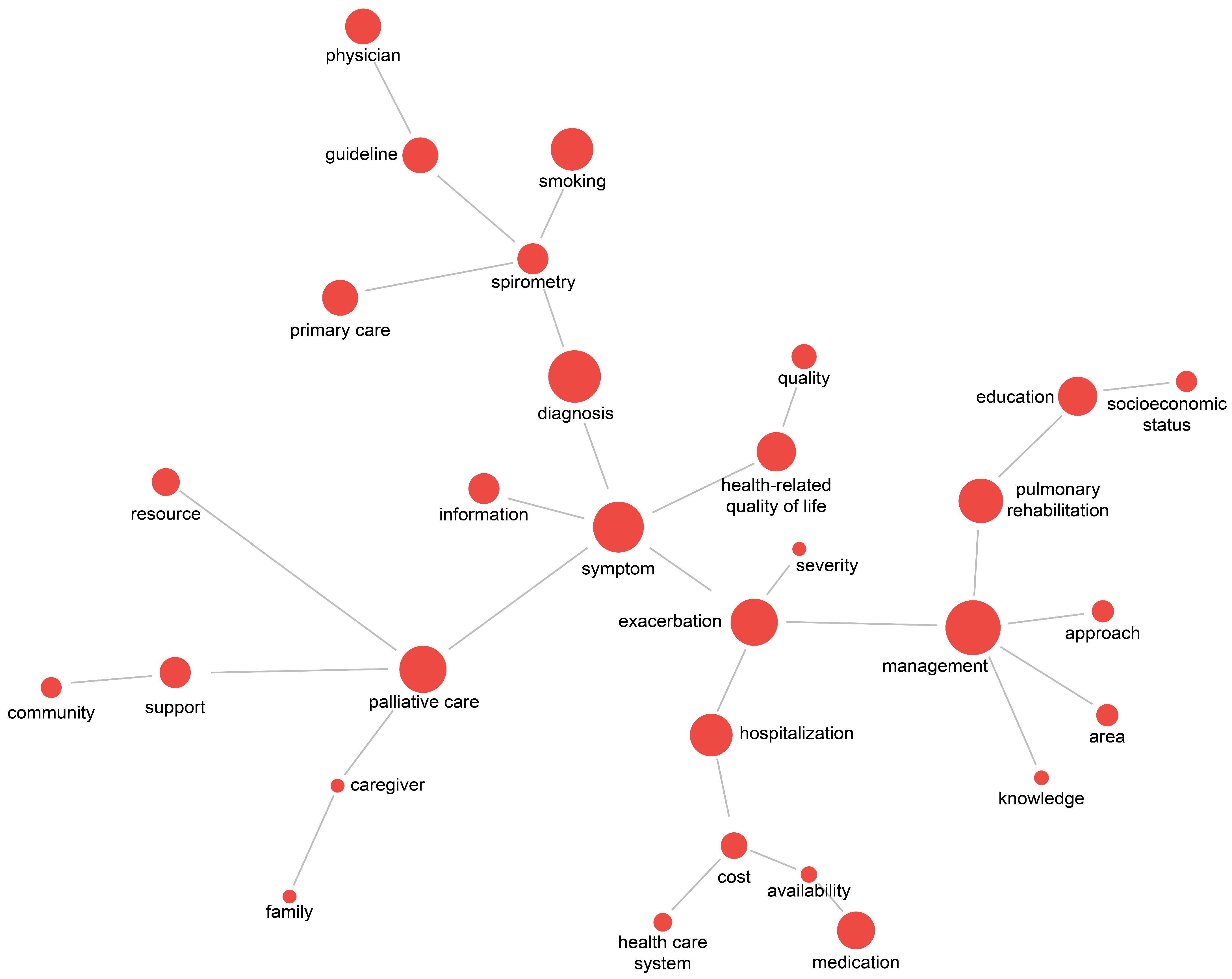 | Topic 2 | Early Diagnosis and Symptom Management | exacerbation (0.059) diagnosis (0.040) symptom (0.032) smoking (0.030) spirometry (0.030) guideline (0.020) primary care (0.012) | Availability Acceptability |