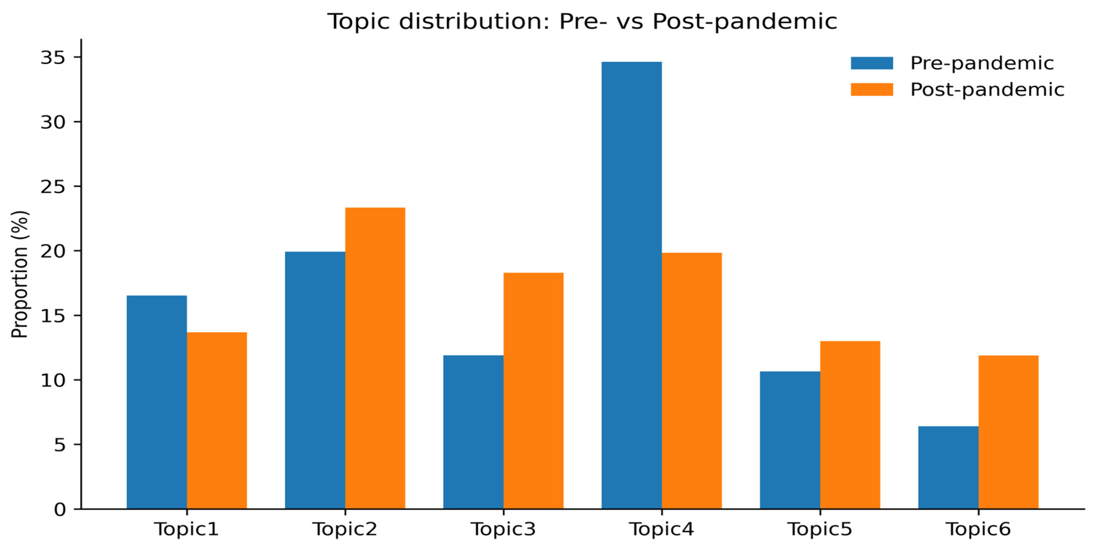 3.4. Topic Trends Before and After the COVID-19 Pandemic