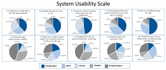 The System Usability Scale (SUS) was utilised to assess the technological system’s efficacy in meeting the needs of the patient cohort undergoing treatment. SUS comprises ten statements (five positive statements and five negative statements, which alternate), each of which is accompanied by a five-point scale ranging from “strongly disagree” to “agree” (Likert ratings) [23,24,25].