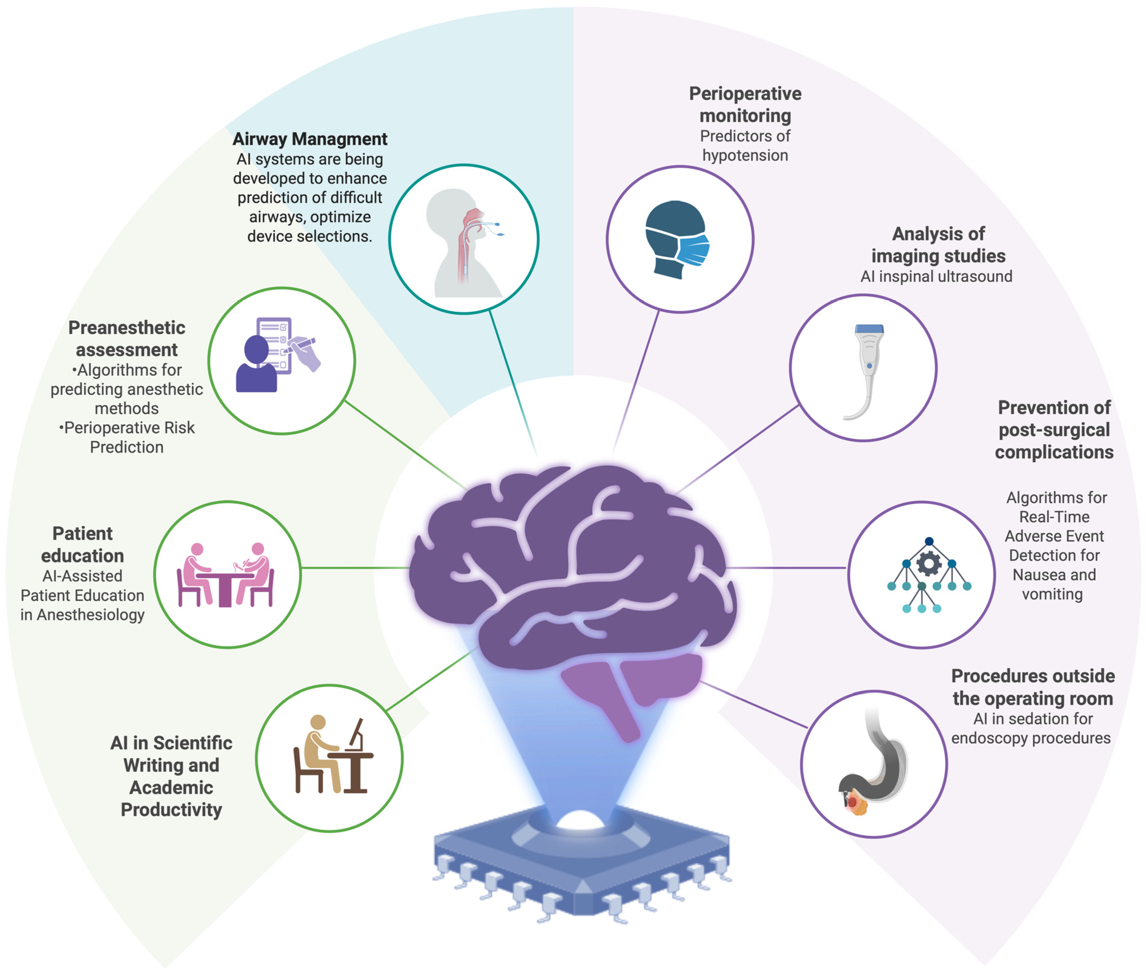 - Balavenkatasubramanian, J.; Kumar, S.; Sanjayan, R.D. Artificial intelligence in regional anaesthesia. Indian J. Anaesth. 2024, 68, 100–104. [Google Scholar] [CrossRef]