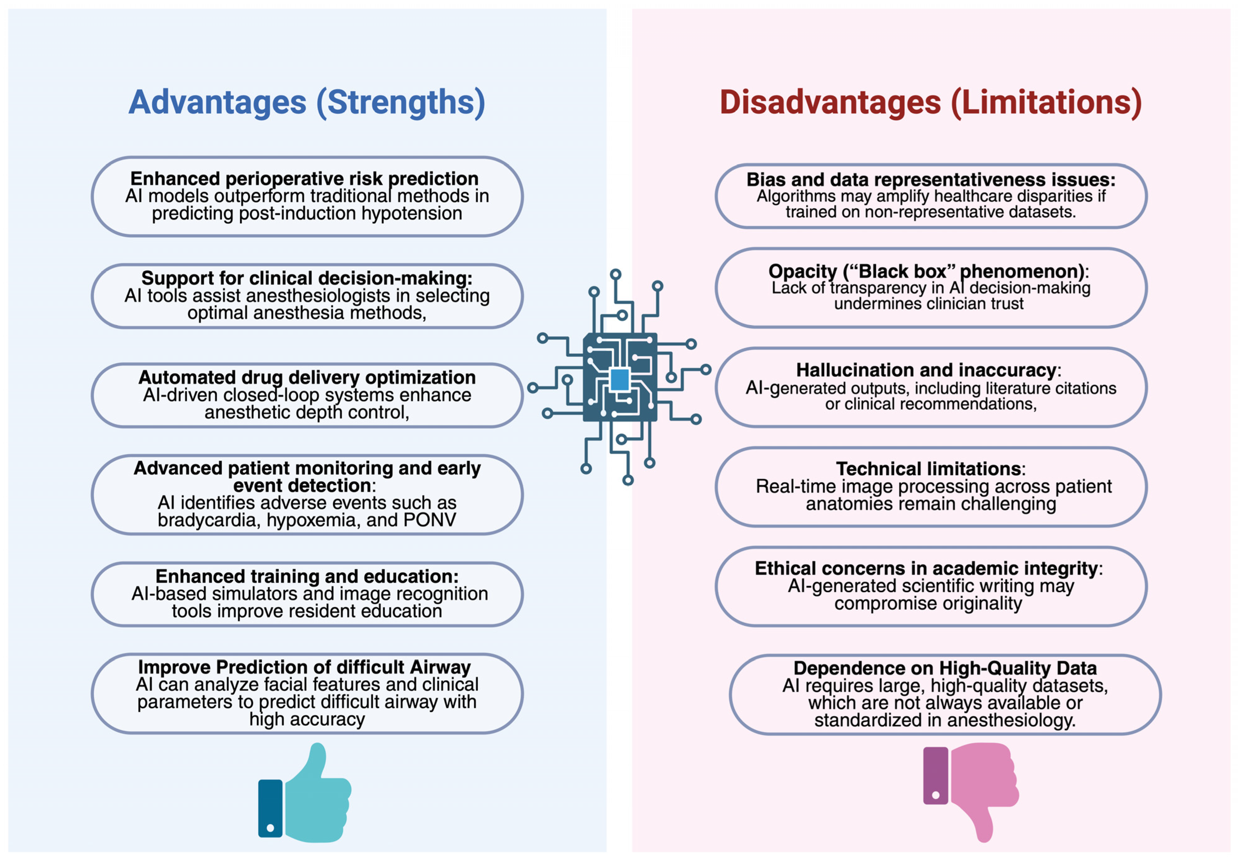 | Education & Simulation | AI-guided simulators, voice recognition | Simulation-based RCTs | ↑ procedural safety; ↓ paresthesia in block placement | Voice recognition errors; cost of simulation |
