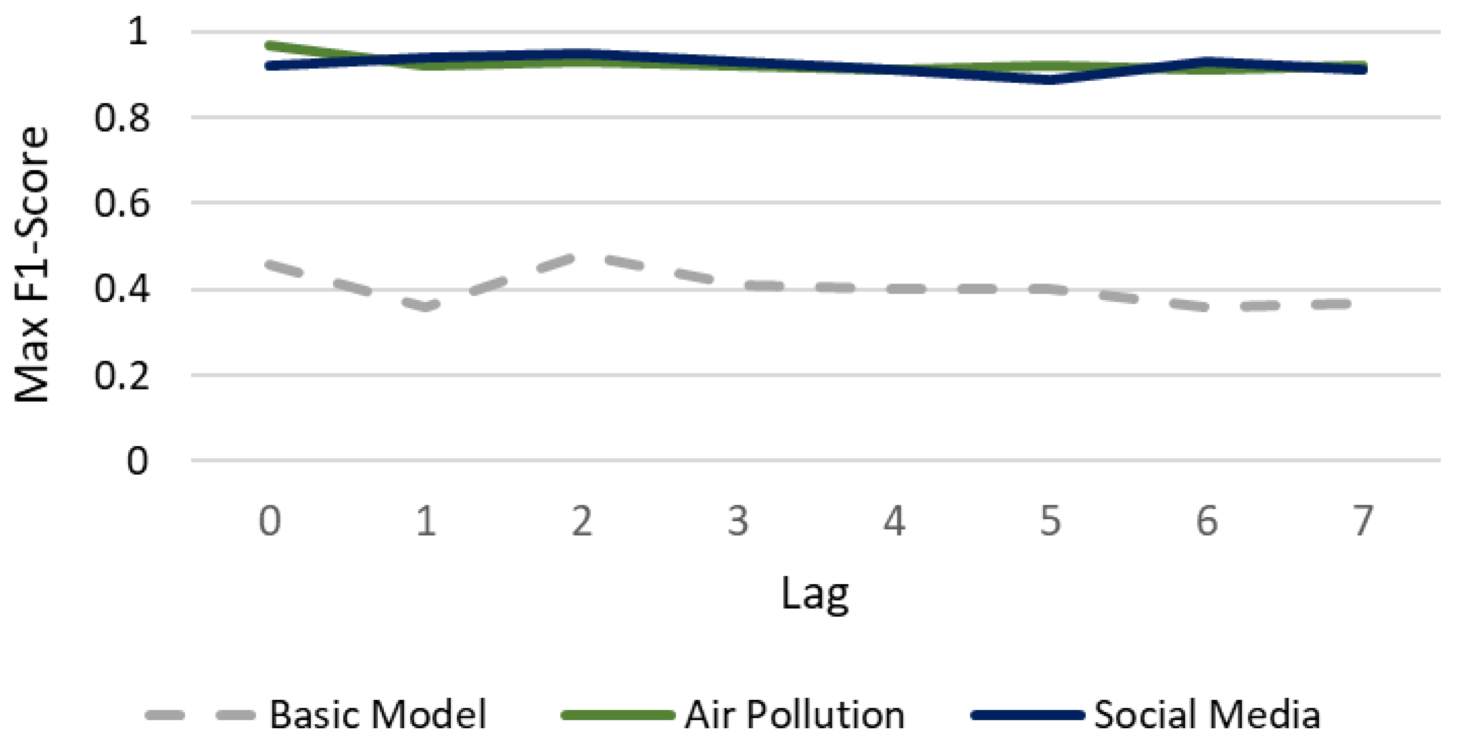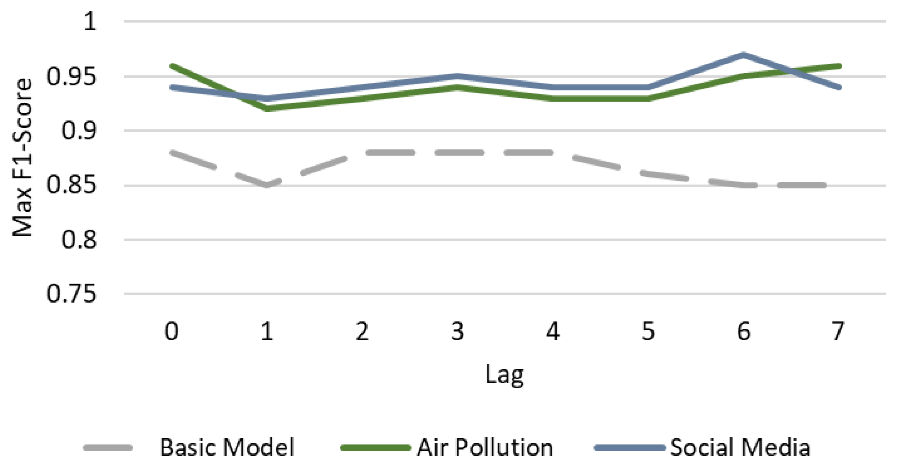 - Social Forecasting: Contrary to the initial assumption that social media might add noise, our analysis revealed its critical role as a long-range sensor, peaking at a 6-day anticipation (F1 0.97). This aligns with the “digital epidemiology” hypothesis: community search patterns regarding symptoms precede clinical saturation, reflecting the behavioral latency between feeling the first symptoms and seeking medical attention.