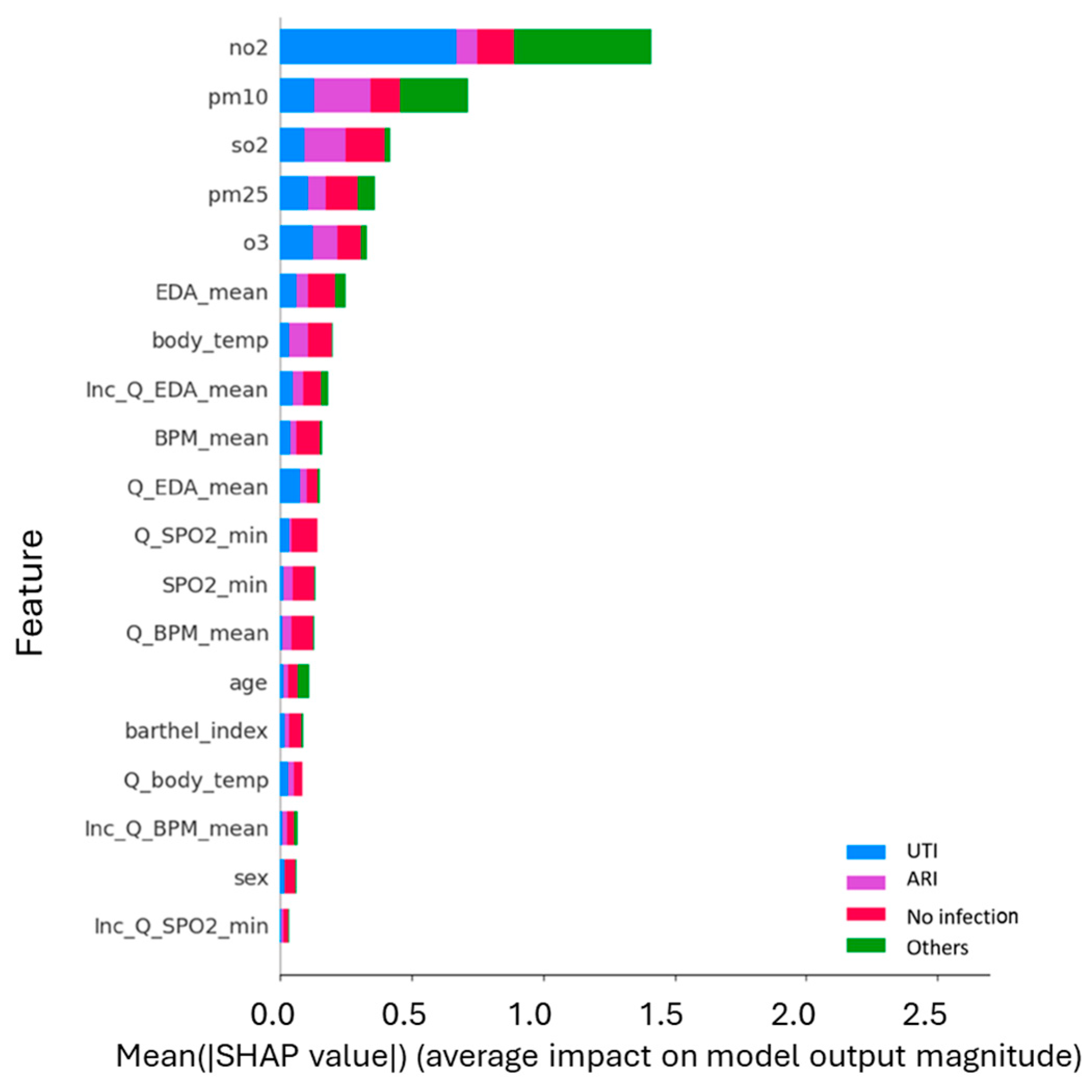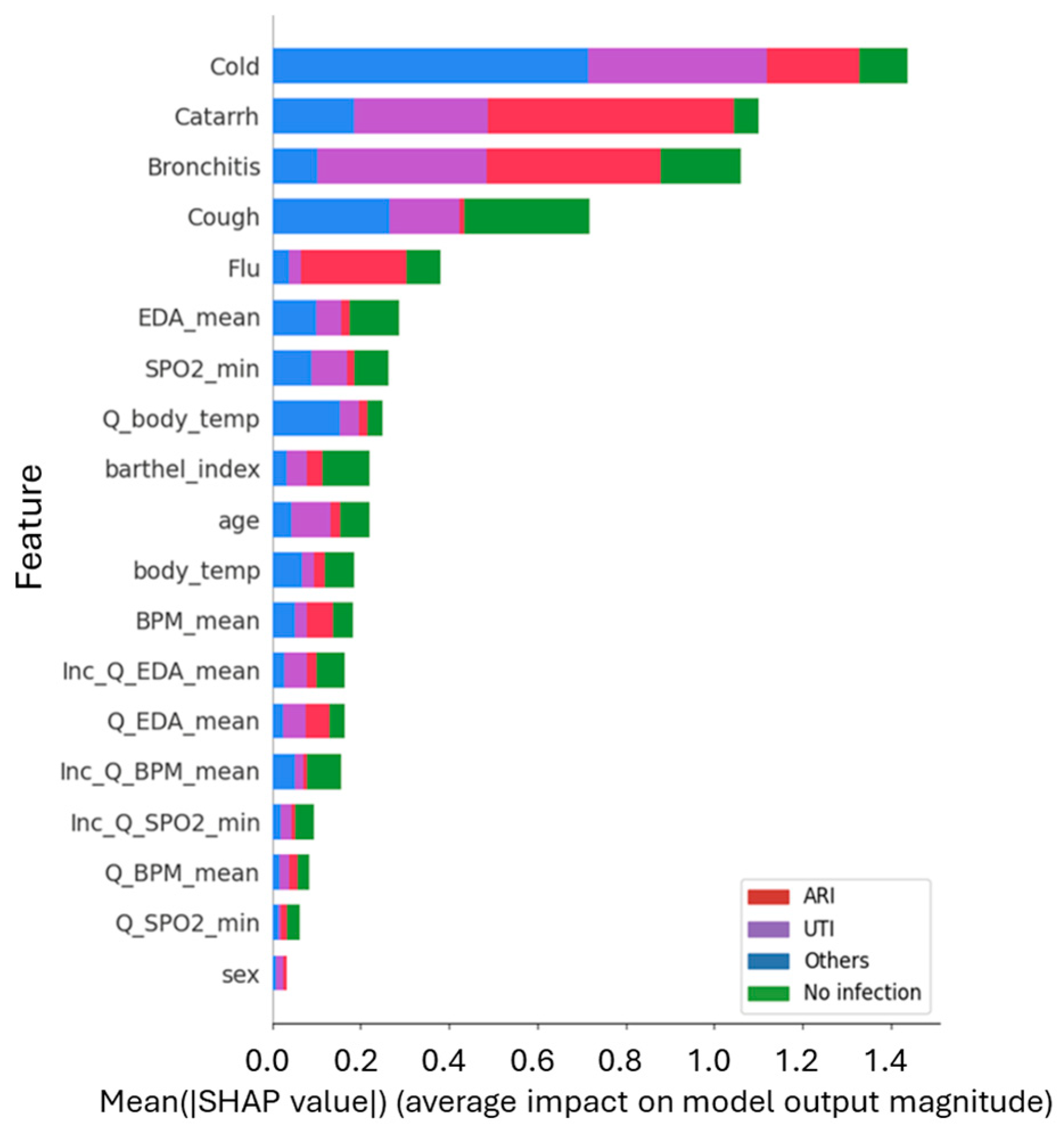 - Multiclass classification: Differentiating specific infection types including “ARI”, “UTI” and “Other Infections”.