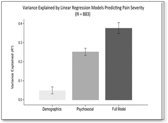 This study also found a particularly high link between functional health and pain severity. The strong link between SF-12 Physical Component Summary scores and pain is likely due to both the disabling effects of pain and partial construct overlap between global physical health indices and pain-related interference, as reported in other community-based studies using generic health status measures [1,23]. While age and gender are associated with pain outcomes in some large international surveys, their influence was limited in our models after accounting for psychosocial and clinical factors. These findings support the idea that clinical and psychosocial factors play a dominant role in determining chronic pain severity [4,24].