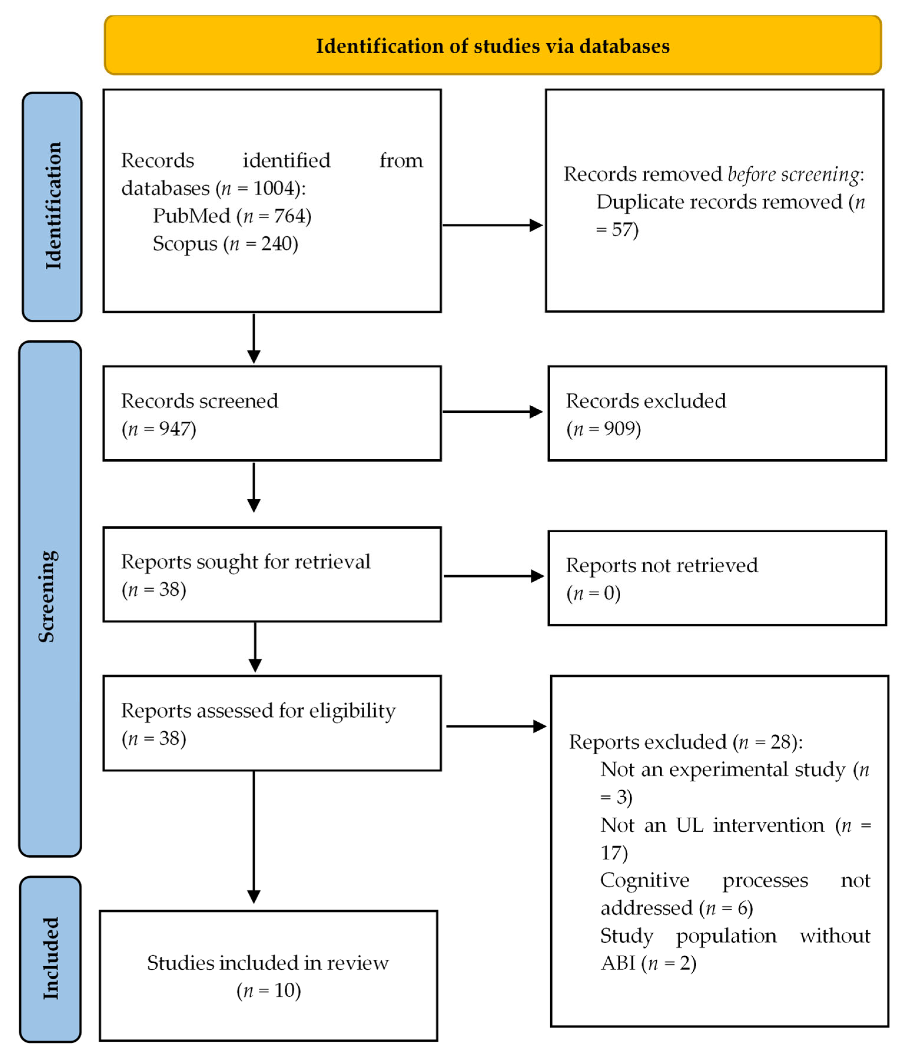 - Ríos-Lago, M. Daño cerebral adquirido: La necesidad de un trabajo multidisciplinar. Acción Psicol. 2012, 4, 5–7. Available online: https://revistas.uned.es/index.php/accionpsicologica/article/view/468 (accessed on 11 June 2025). [CrossRef]