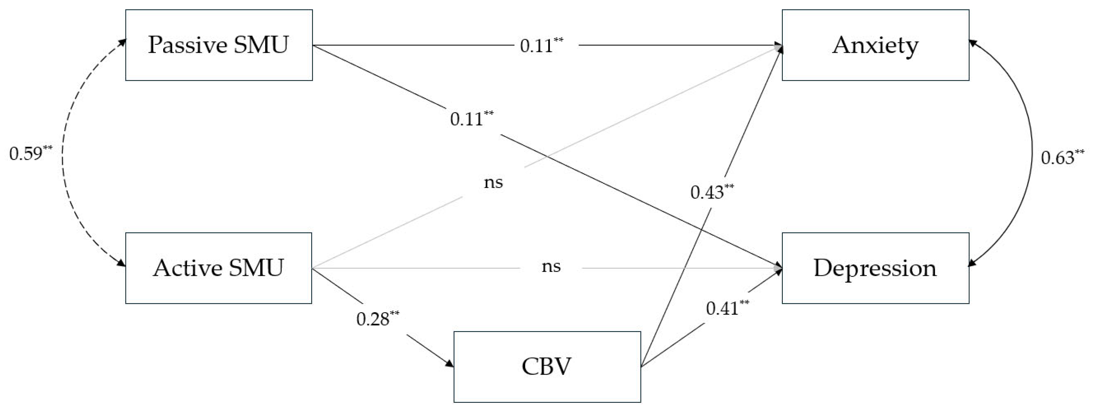 - Cheng, W.; Nguyen, D.N.; Nguyen, P.N.T. The Association between Passive Social Network Usage and Depression/Negative Emotions with Envy as a Mediator. Sci. Rep. 2023, 13, 10097. [Google Scholar] [CrossRef]