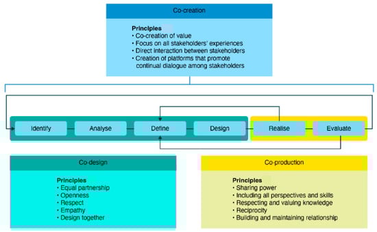 - Vargas, C.; Whelan, J.; Brimblecombe, J.; Allender, S. Co-creation, co-design and co-production for public health: A perspective on definitions and distinctions. Public Health Res. Pract. 2022, 32, e3222210. [Google Scholar] [CrossRef]