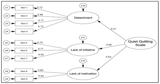 Confirmatory factor analysis model for the Quiet Quitting Scale.