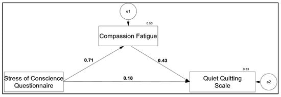 Compassion fatigue partially mediates the relationship between stress of conscience and quiet quitting.