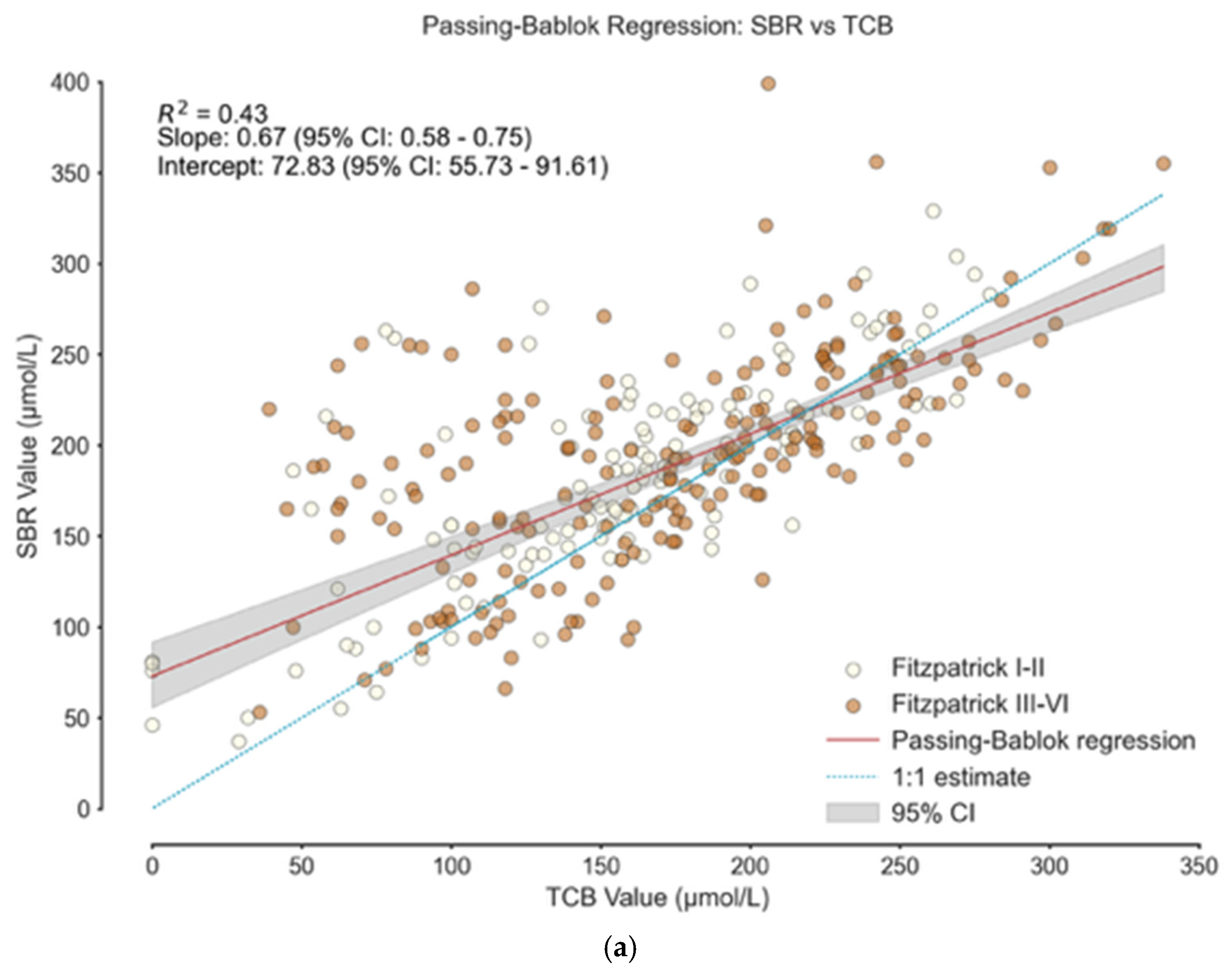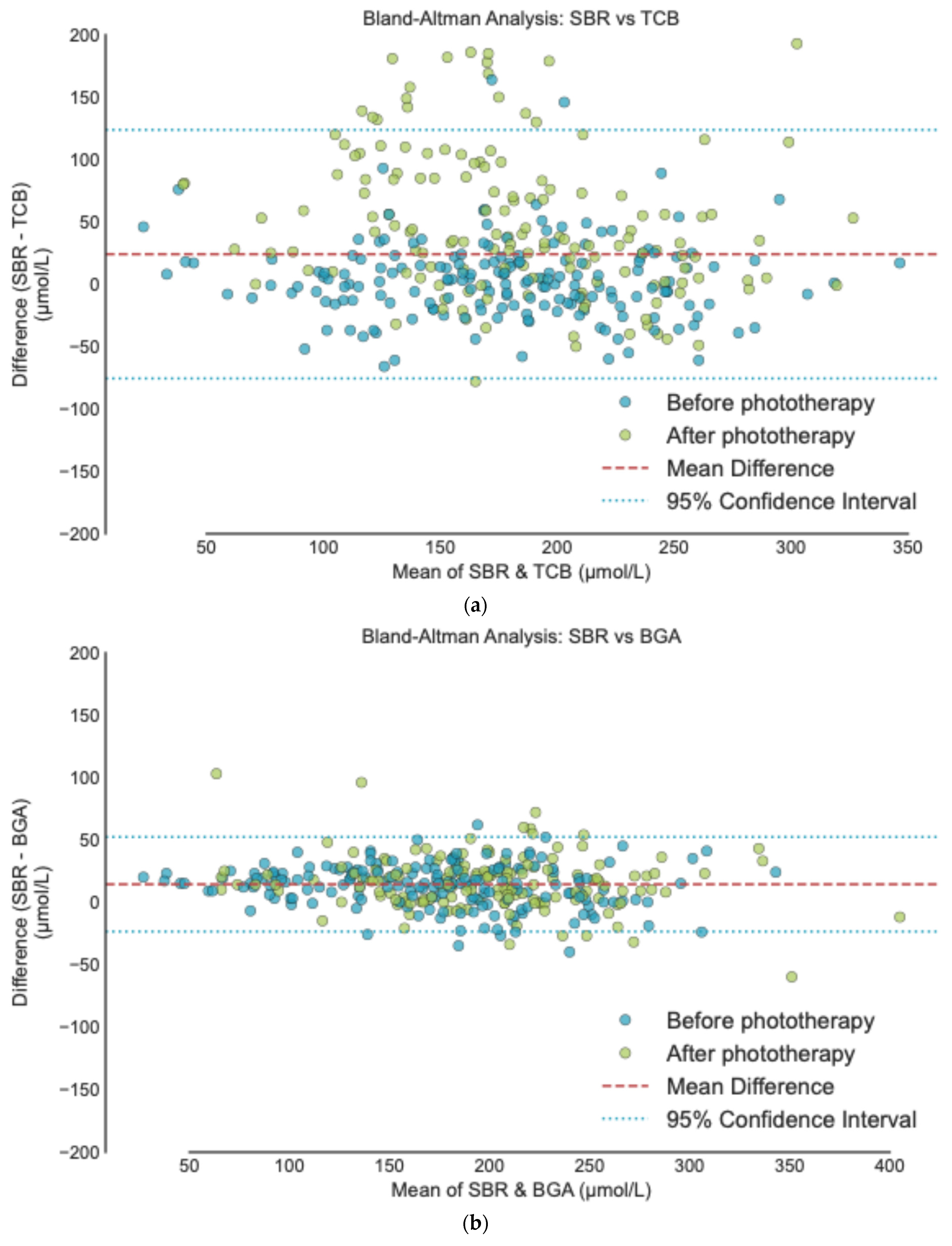 - Mustakim, M.; Rashid, N.I.; Roslan, N.; Mohammad, N.A.; Yunos, N.M.; Noor, A. Comparison between the Transcutaneous and Total Serum Bilirubin Measurement in Malay Neonates with Neonatal Jaundice. Malays. J. Med. Sci. 2022, 29, 64–76. [Google Scholar] [CrossRef]
