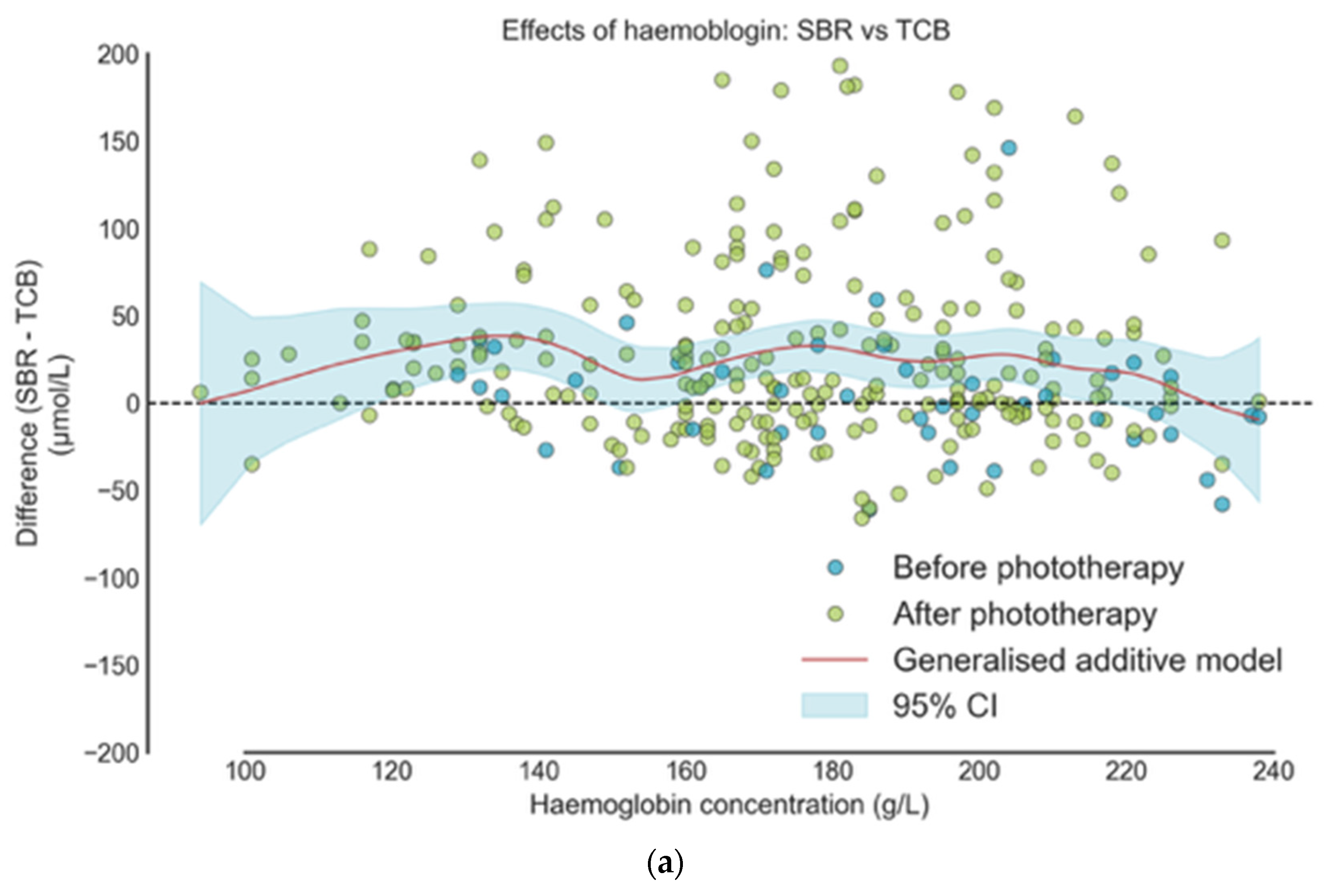 - Hynes, S.; Moore, Z.; Patton, D.; O’Connor, T.; Nugent, L. Accuracy of Transcutaneous Bilirubin Versus Serum Bilirubin Measurement in Preterm Infants Receiving Phototherapy: A Systematic Review. Adv. Neonatal Care 2020, 20, E118–E126. [Google Scholar] [CrossRef]