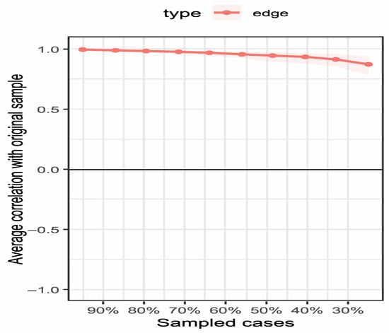 The R package bootnet (V 4.4.3) was used for case-dropping bootstrap analysis to test the stability of network structure and centrality indices. With 1000 repetitions of sampling, a correlation stability coefficient (CS-coefficient) ≥ 0.5 was considered indicative of stable results generalizable to similar populations. The edge weight stability CS-coefficient was 0.75 (meeting the “excellent” standard), and the node strength stability CS-coefficient was 0.67 (meeting the “good” standard).