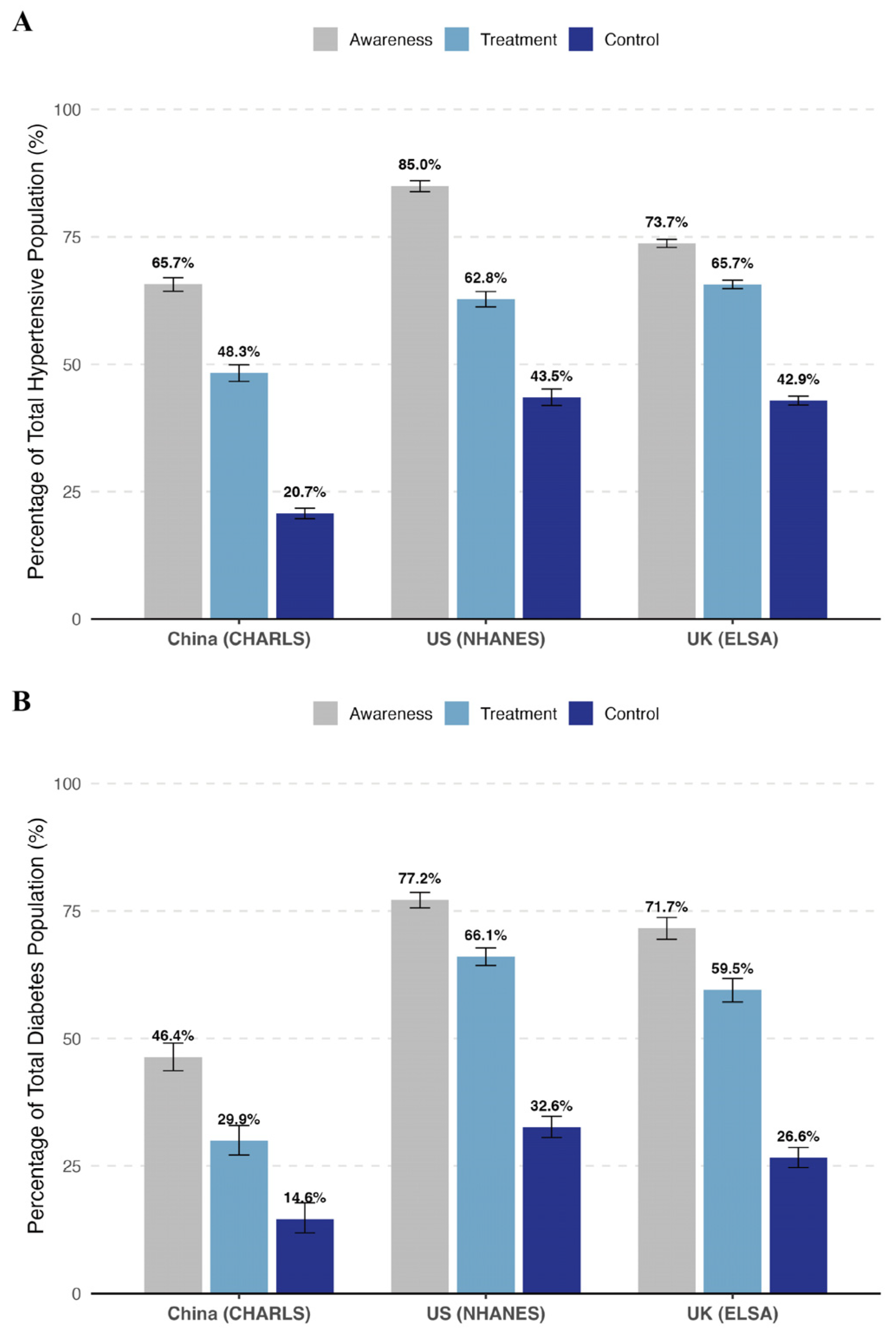 Inequities in the Hypertension and Diabetes Care Cascade: A Comparison of SES and Insurance in China, the US, and the UK