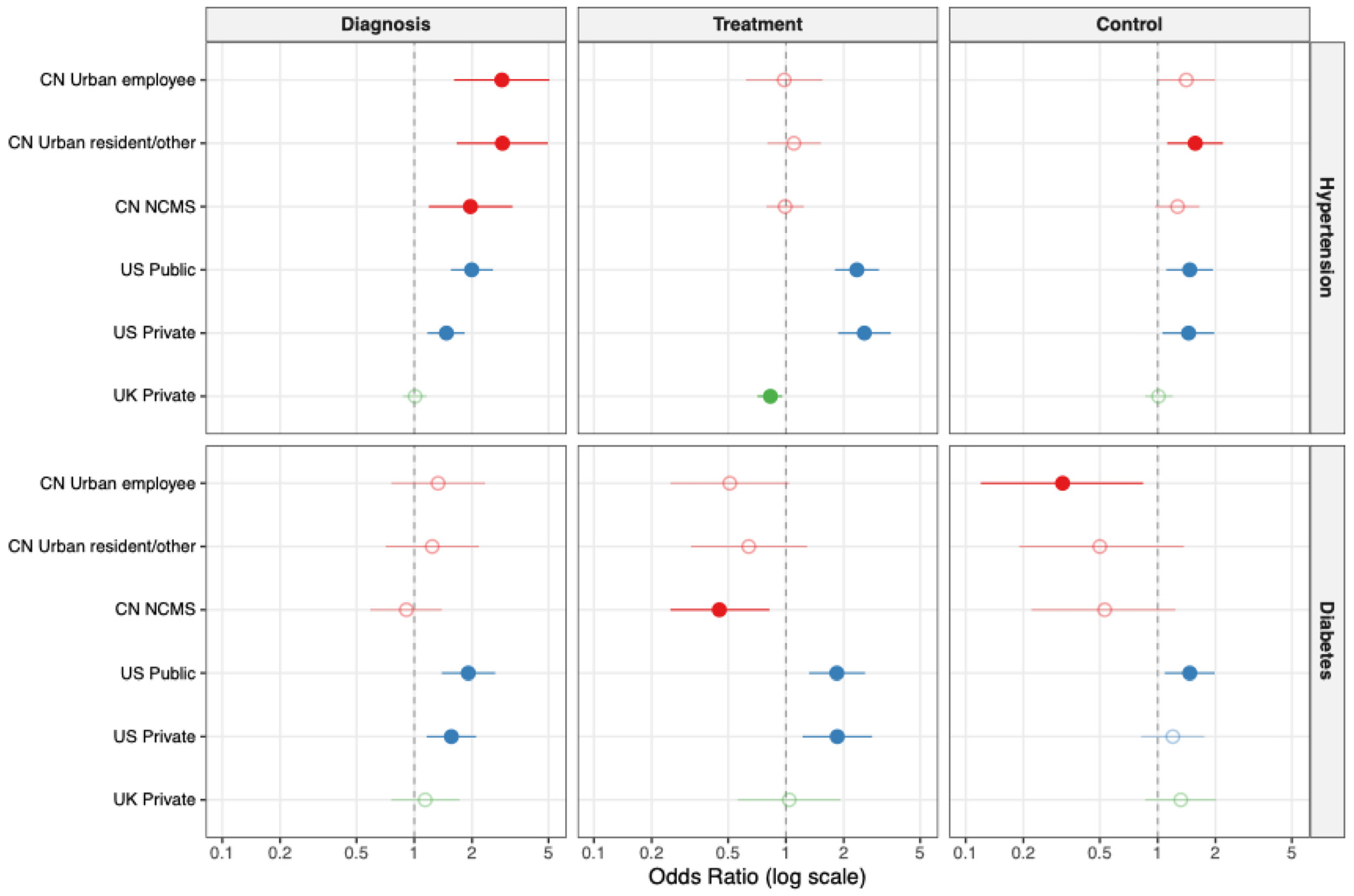 Chicago/Turabian StyleNie, Yutong, Qiaorong Huang, Wentong Meng, Xue Li, Lei Chen, and Xianming Mo. 2026. "Inequities in the Hypertension and Diabetes Care Cascade: A Comparison of SES and Insurance in China, the US, and the UK" Healthcare 14, no. 4: 501. https://doi.org/10.3390/healthcare14040501