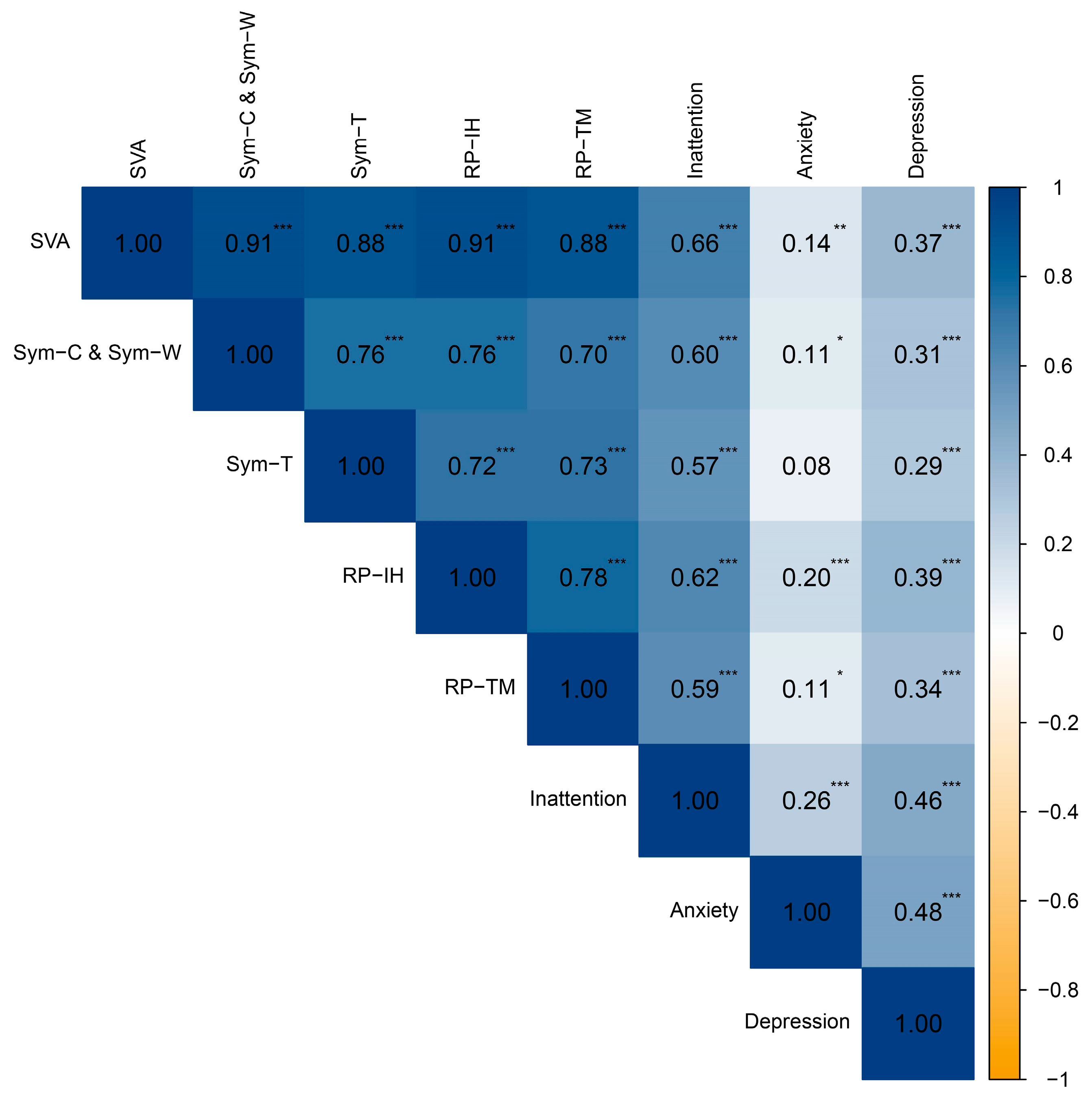 3.3. Correlation Analysis of SVA with IA, Anxiety and Depression