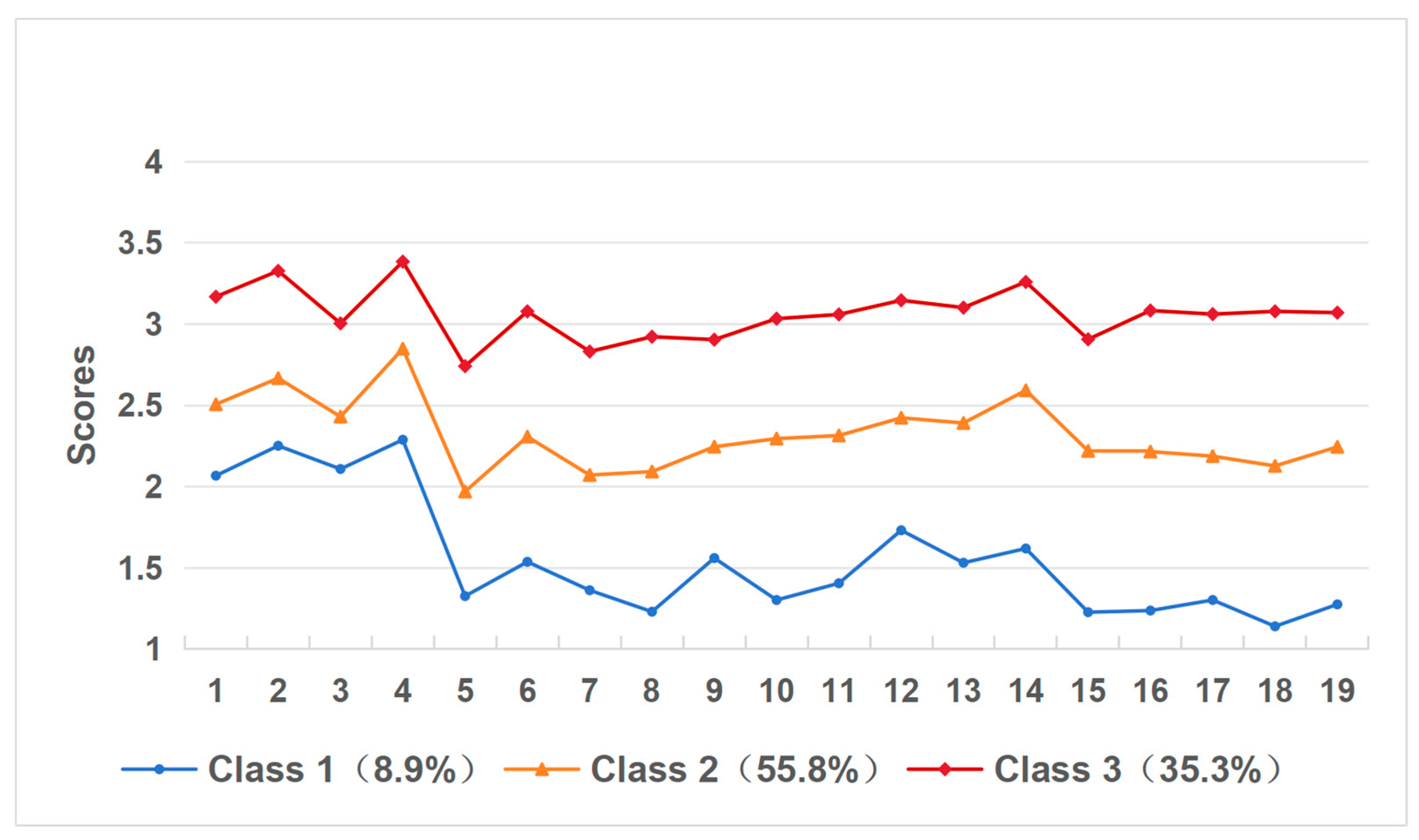 - Tein, J.-Y.; Coxe, S.; Cham, H. Statistical Power to Detect the Correct Number of Classes in Latent Profile Analysis. Struct. Equ. Model. A Multidiscip. J. 2013, 20, 640–657. [Google Scholar] [CrossRef]