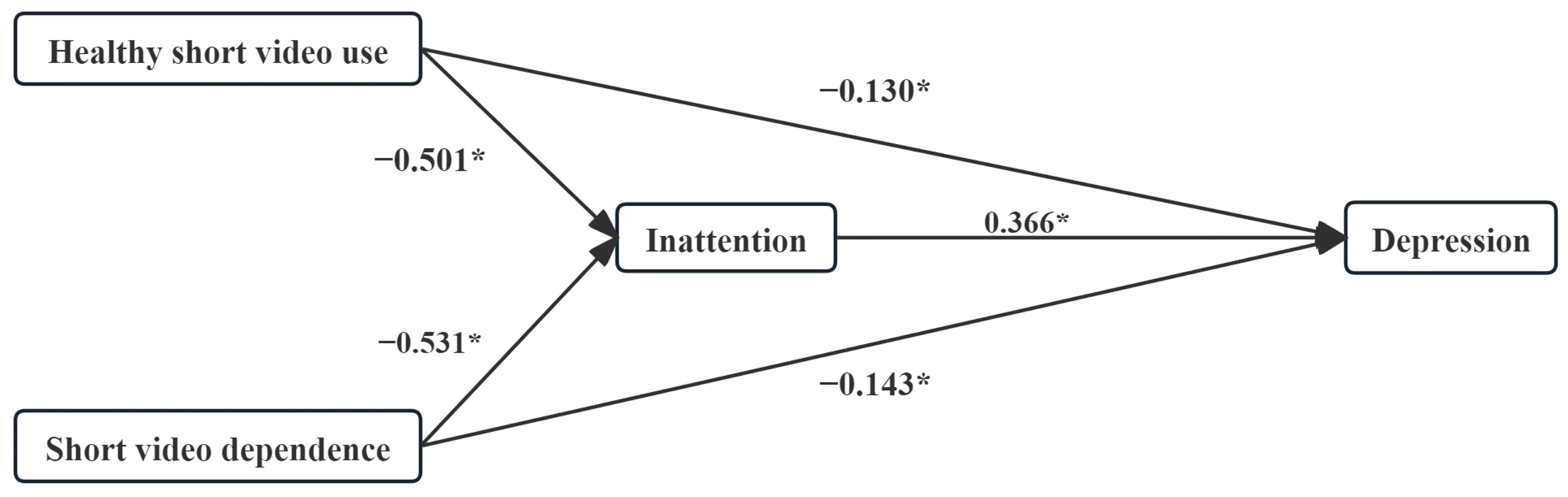 - Zhu, C.; Jiang, Y.; Lei, H.; Wang, H.; Zhang, C. The Relationship between Short-Form Video Use and Depression among Chinese Adolescents: Examining the Mediating Roles of Need Gratification and Short-Form Video Addiction. Heliyon 2024, 10, e30346. [Google Scholar] [CrossRef]