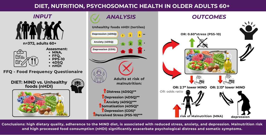 The Association Between MIND Diet Adherence, Nutritional Status, and Psychosomatic Health in Adults Aged 60+: A Pilot Study