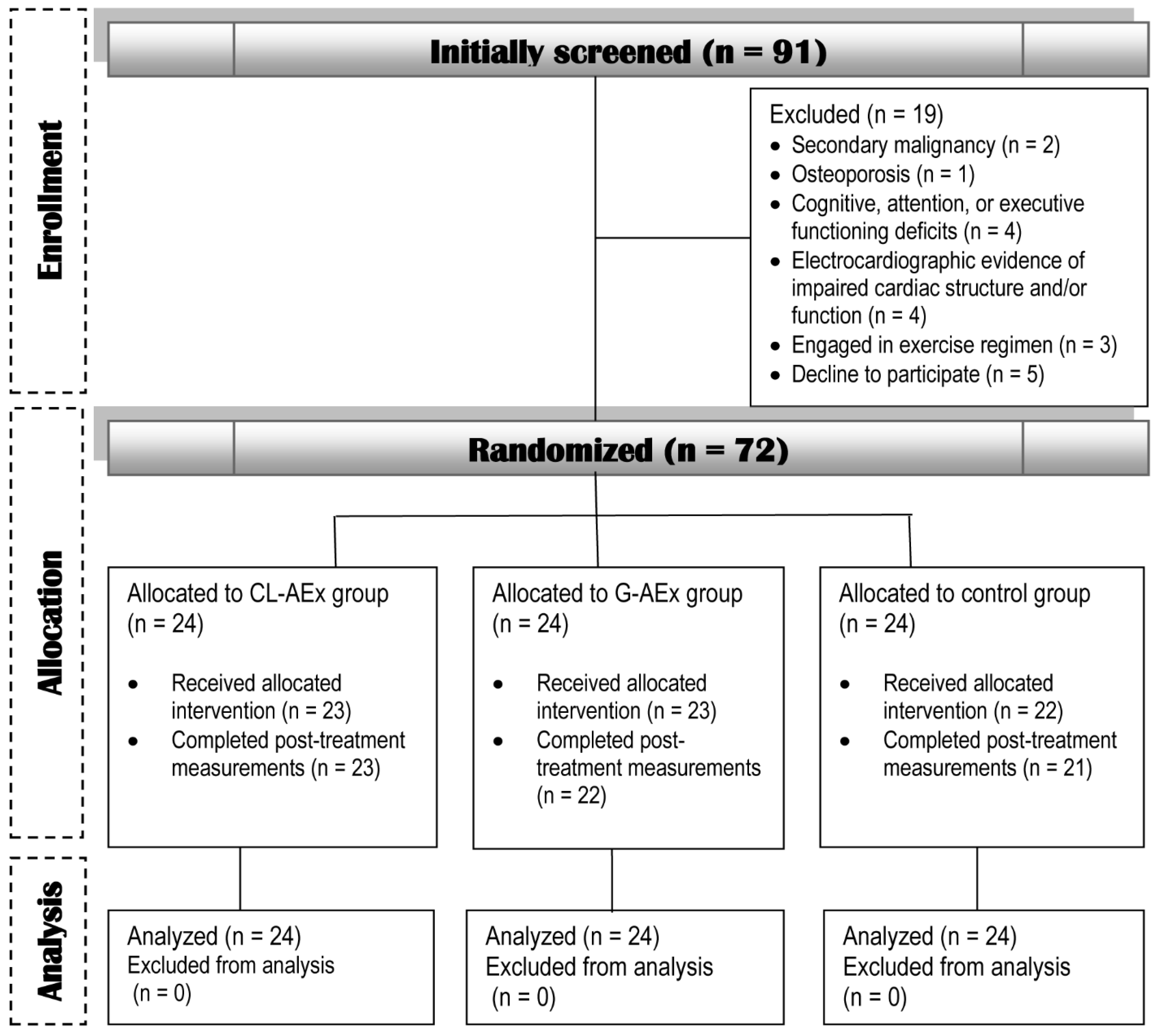 | Variables | G-AEx Group (n = 24) | CL-AEx Group (n = 24) | Control Group (n = 24) | p-Value |