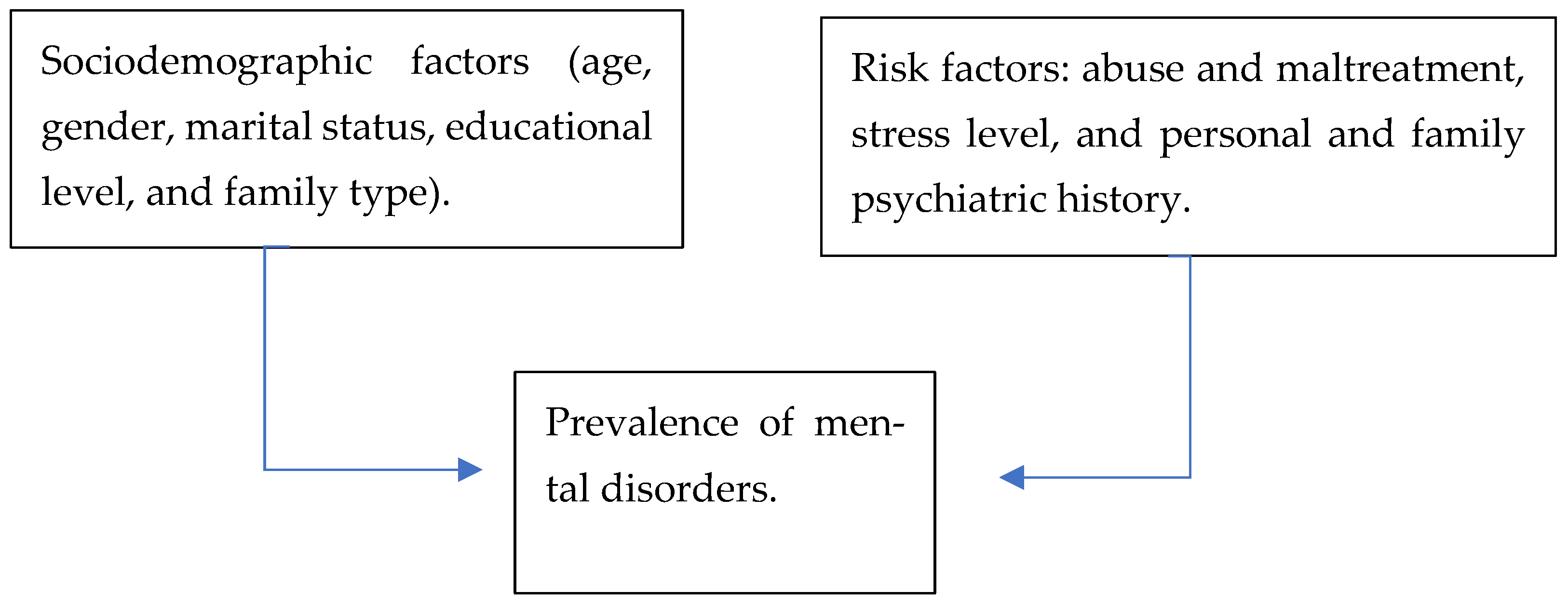 Research Hypothesis 2 (H2): Risk factors (abuse and maltreatment, stress levels, and personal and family psychiatric history) are associated with a higher prevalence of mental disorders.