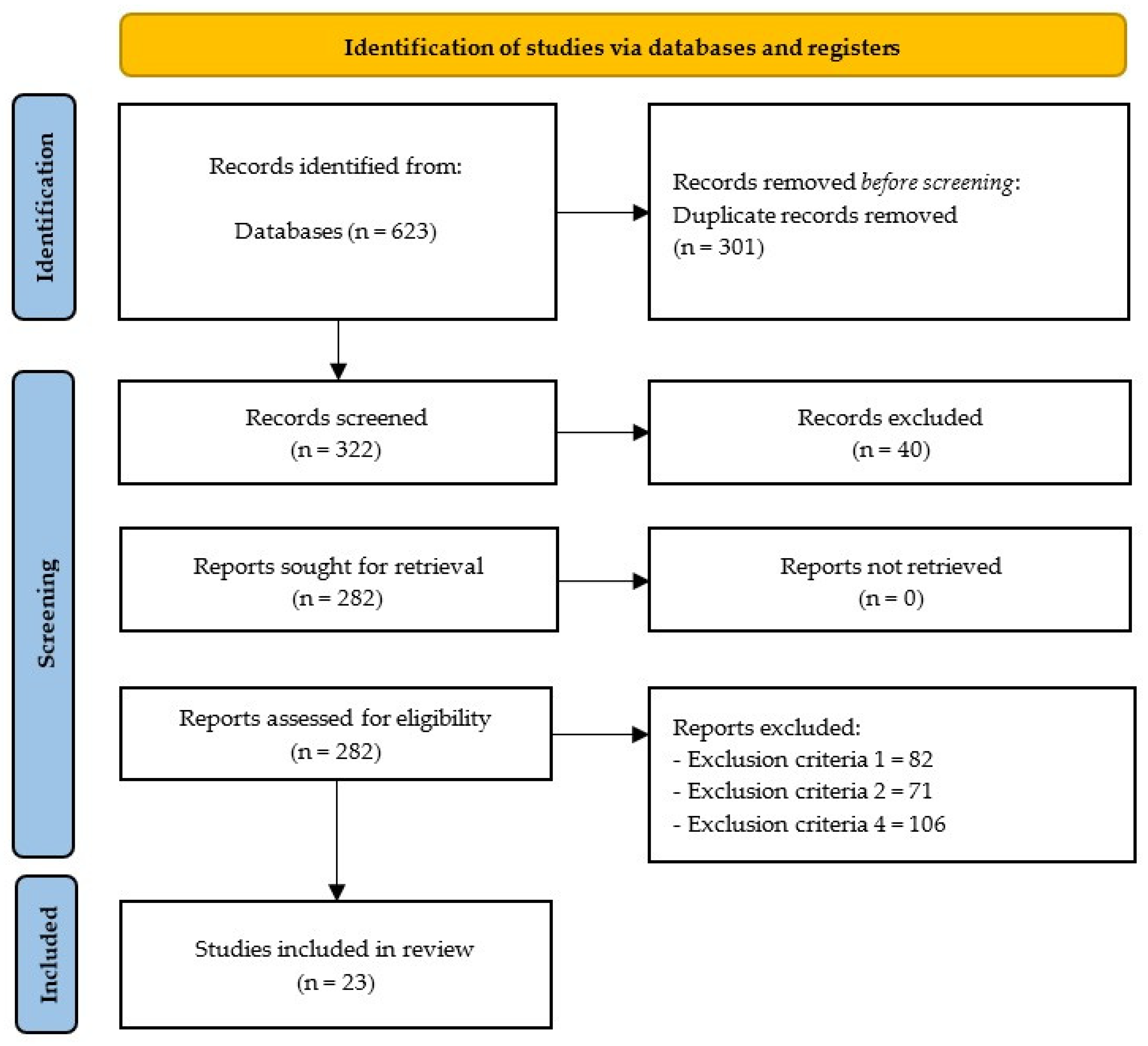 | 5 | Other criteria | Full-text, peer-reviewed original research that was published in English or Spanish in a journal | Non-peer-reviewed journal articles Non-original full-text studies (conference papers…) Studies written in another language |