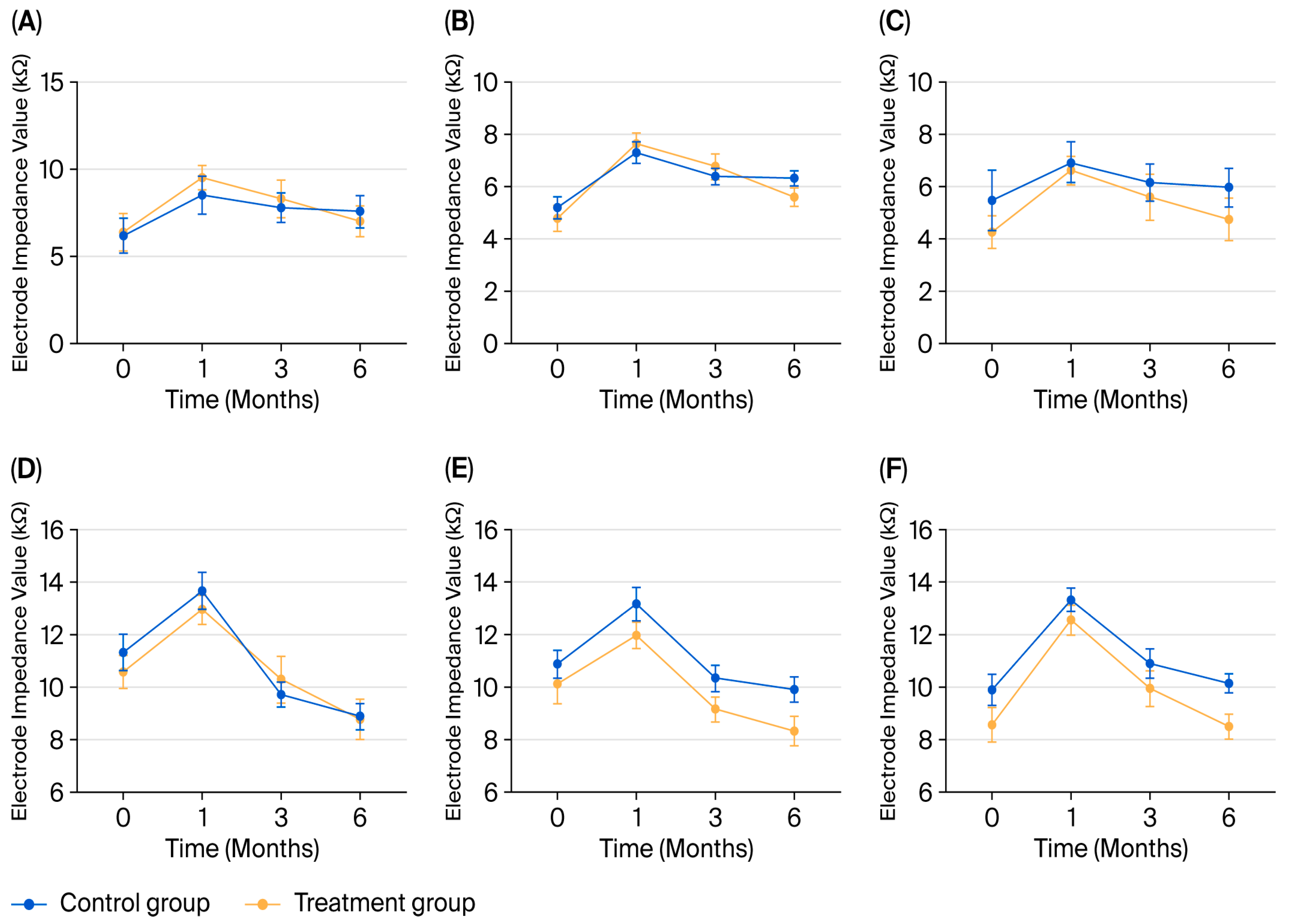 The primary outcome measure was electrode impedance. Impedance measurements were obtained at four time points: intraoperatively, and at 1 month (initial activation), 3 months, and 6 months after surgery.