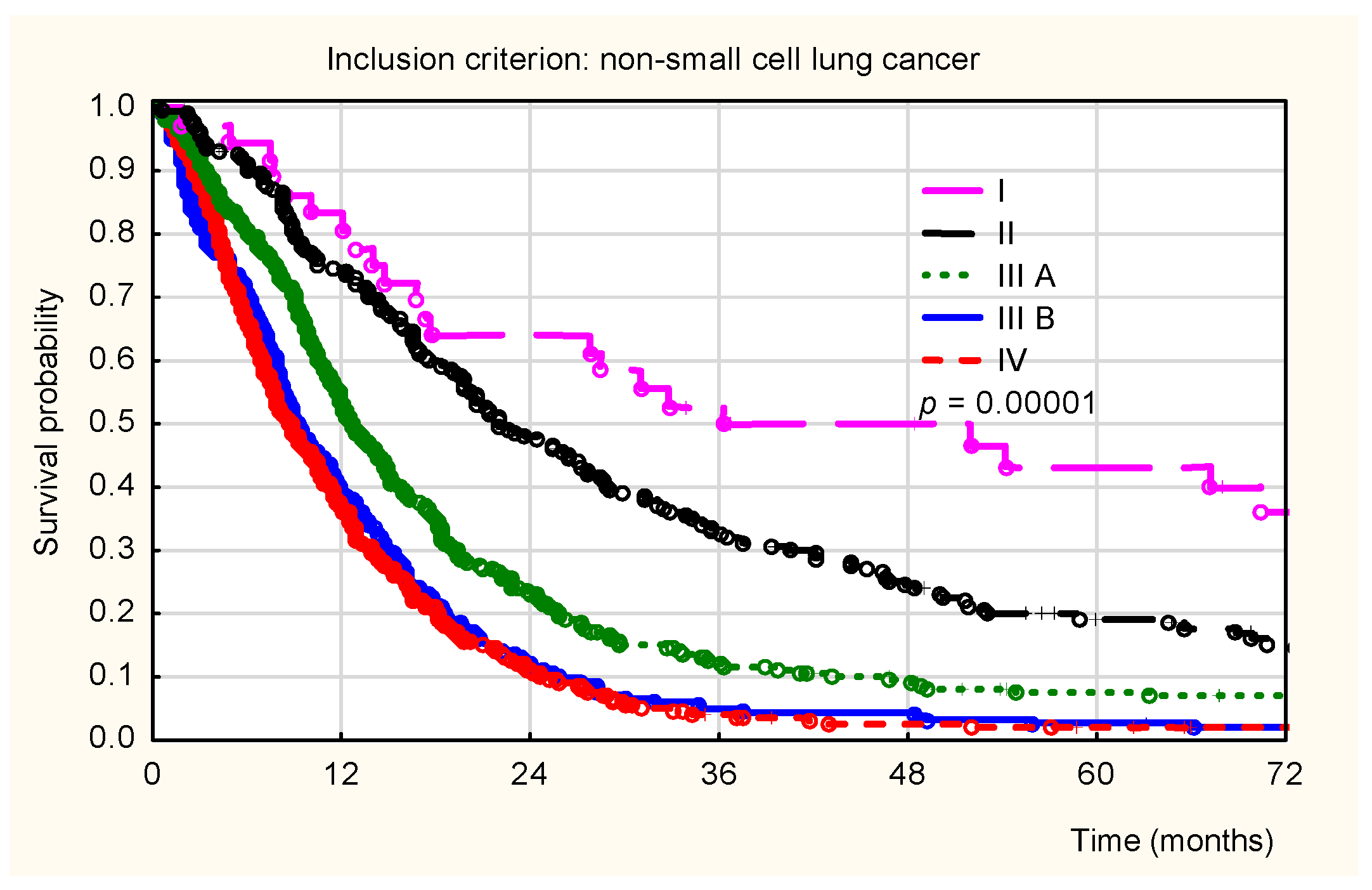 For NSCLC patients, overall survival differed significantly depending on the clinical stage (