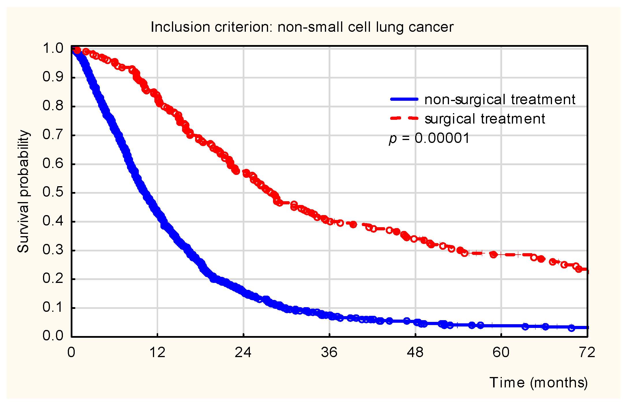 Among the entire NSCLC cohort, highly statistically significant differences in survival were observed between surgically treated and non-surgically treated patients (