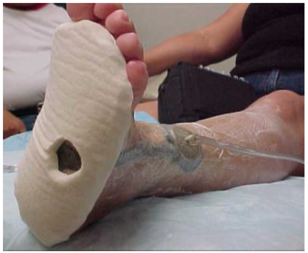 - Eginton, M.T.; Brown, K.R.; Seabrook, G.R.; Towne, T.B.; Cambria, R.A. A prospective randomized evaluation of negative-pressure wound dressings for diabetic foot wounds. Ann. Vasc. Surg. 2003, 17, 645–649. [Google Scholar] [CrossRef] [PubMed]
