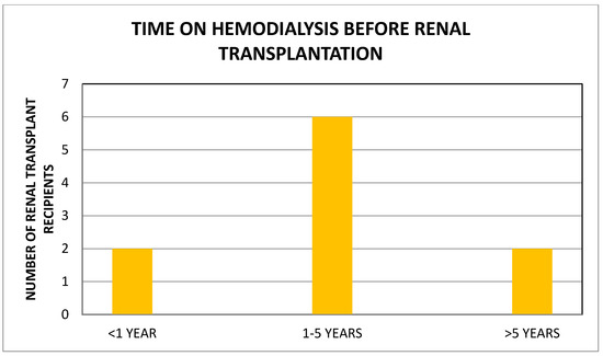 Time on hemodialysis before renal transplantation.