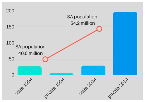 Comparative growth in state and private dialysis facilities in South Africa (1994–2014).
