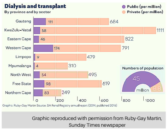 In contrast to other SSA countries, SA was the first to provide access to kidney transplant and dialysis, which began in the 1960s. Initially, these services were primarily restricted to “white only” hospitals in large urban areas under the apartheid government, thereby excluding the majority of the population []. Despite a peaceful transition to democracy in 1994, and the adoption of a progressive constitution with an impressive bill of rights, South Africans still have limited access to dialysis care in the state sector. Isolated reports reveal that in state facilities, at least half of those who present for care are turned away [,]. In response to the high demand for care, some state centres have developed criteria for rationing that have been criticised by the broader nephrology community. These criteria are based on national citizenship, literacy, and issues linked to poverty, such as having insufficient funds to travel to a treatment centre. Poor adherence to medical regimens and apparently unfavourable home circumstances have also been cited as justifications to withhold access to care [,]. It could be argued that such rationing policies constitute a human rights violation and the clinicians ascribing to them are complicit, further compromising the most vulnerable in society.