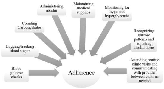 - Naranjo, D.; Mulvaney, S.; McGrath, M.; Garnero, T.; Hood, K. Predictors of self-management in pediatric type 1 diabetes: Individual, family, systemic, and technologic influences. Curr. Diabetes Rep. 2014, 14, 544. [Google Scholar] [CrossRef] [PubMed]