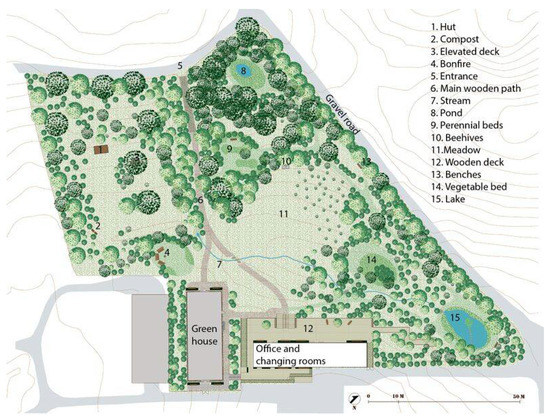 - Stigsdotter, U.K. Nacadia Healing Forest Garden, Hoersholm Arboretum, Copenhagen, Denmark. In Therapeutic Landscapes: An Evidence-Based Approach to Designing Healing Gardens and Restorative Outdoor Spaces; Marcus, C.C., Sachs, N.A., Eds.; John Wiley & Sons Ltd.: Hoboken, NJ, USA, 2013; pp. 198–205. [Google Scholar]