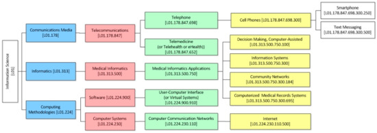 - ICT category—under the MeSH classification system (e.g., telemedicine, medical informatics applications, etc.) (i.e., Sub-category 2.1.1. of SF/HIT).