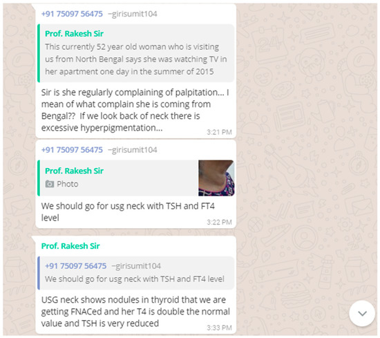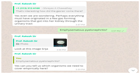 VP is a medical student from Tairunnessa Memorial Medical College, Gazipur, Bangladesh and an active member of our CBBLE who has attended the offline component of our CBBLE, which is also organized in collaboration with BMJ case reports [22]. After finishing his offline elective stint a year back in our host Institute, he has subsequently remained active online and regularly collates patient data shared by different members of our CBBLE into deidentified online patient records and ensures that all the signed informed consents from these patients are maintained and preserved in secure locations. The physicians in our CBBLE share their patient data in the hope of obtaining online feedback through conversational engagement with peers along with current best evidence support which VP provides through extensive searches of online and offline electronic resources. The patient narrative below was posted on our WhatsApp discussion forum by a CBBLE member and collated by VP.