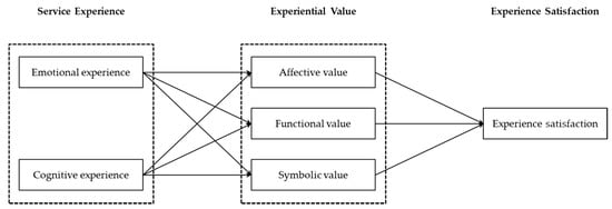 Parker and Mathews [32] distinguished two aspects in customer satisfaction: (1) result of a consumption activity or experience and (2) process. Kristensen et al. [33] suggested that customer satisfaction is a customer’s assessment of product purchase and consumption value experience, which is based on a comparison of the desired and the acquired. According to the study, satisfaction is a customer’s overall judgment of consumption results and can be measured using comprehensive methods. In sum, the value generated by a service experience can affect customer satisfaction. Based on this, the following hypotheses can be proposed: