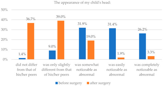 - The appearance of my child’s head after surgery: do not differ from that of his/her peers; is only slightly different from that of his/her peers; is somewhat noticeable as abnormal; is easily noticeable as abnormal; is completely noticeable as abnormal