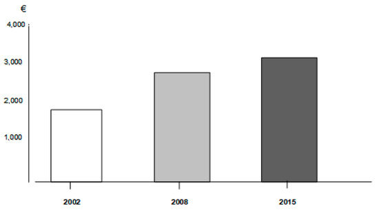 The trend of the annual chronic obstructive pulmonary disease (COPD) cost-of-illness from 2002 to 2015 in Italy.