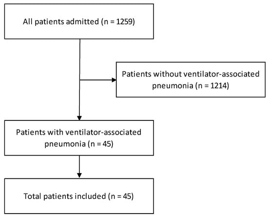 - Rello, J.; Ollendorf, D.A.; Oster, G.; Vera-Llonch, M.; Bellm, L.; Redman, R.; Kollef, M.H.; VAP Outcomes Scientific Advisory Group. Epidemiology and outcomes of ventilator-associated pneumonia in a large US database. Chest 2002, 122, 2115–2121. [Google Scholar] [CrossRef] [PubMed]