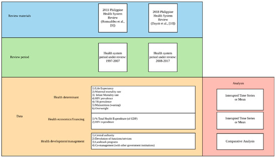 The National Health Service (NHS) of the UK was established in 1948 to render health care services at the national level coverage [3]. Its primary focus from 1950 to 1970 was on the modernization of facilities and technologies for improved health care delivery services. On the other side of the world, in China, since the founding of the People’s Republic in 1949, Meng et al. [4] emphasized that the “formation and development of the health system, especially the organization and governance structure, have been closely related to political, economic and administrative reforms”. The main mover in the changes in China’s health system was mainly due to the country’s economic pursuits which lasted for more than 30 years [4]. In the 1980s, the implementation of China’s Open Door Policy has allowed an influx of foreign investments, which then allowed the country to bolster its health financing schemes, which are linked to the economic developments brought forth by the policy [5]. Then there is the US health system, which began in the private sector and took flight in the 1960s as a state-regulated program [6]. The health system founded from the private sector’s perspective had a domino effect on the rise of the private insurance system. Private health insurance in the United States had its beginnings around the early 1930s, with the establishment of non-profit Blue Cross plans for hospital care and soon after Blue Shield plans for physician care [6,7]. Whereas in the Philippines, the earliest concept of public health was introduced by the Franciscan Friars in 1577 [8]. Various developments with respect to health have been fostered by the previous colonizers. The Spaniards instituted the Superior Board of Health and Charity in 1888, whereas the Americans helped in the installation of a more formal health administration through the (1) Act 1507 of the Philippine Commission in 1901 setting up the Board of Health of the Philippine Islands, and (2) Act 307 through 309, which provided provincial and municipal boards for health [8]. Forty years later, the Philippines independently created its own health system in 1941, where the Department of Health was separated from the Department of Health and Public Welfare and was established as a separate entity [9]. The Philippine health system operates in a devolved manner owing to the local government code of 1991, whereby services were mostly under the jurisdiction of the local governments, with supplementary services such as major national programs, which include but are not limited to immunization, tuberculosis, nutrition, etc. Decentralization of health services became a center piece of the Philippine health system.